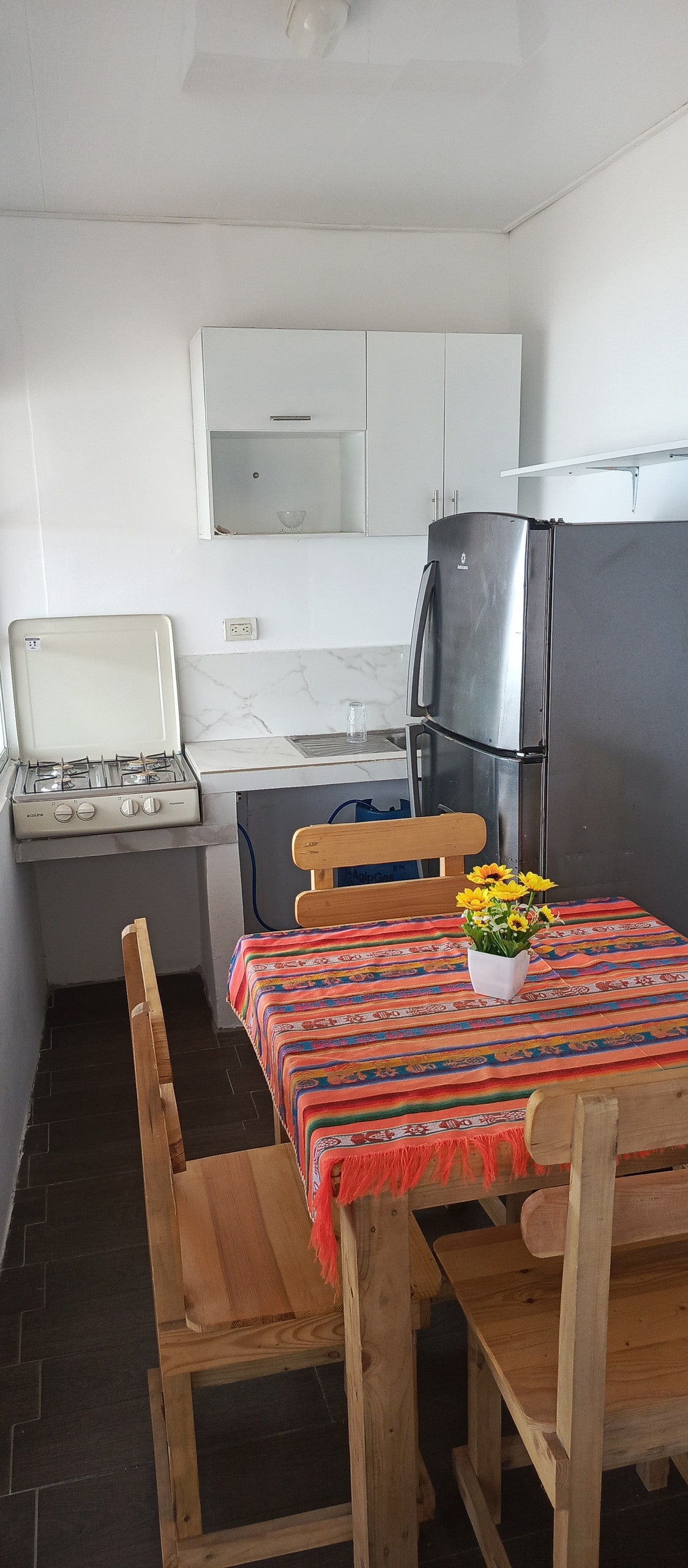Departamento Ciudad del Surf es el destino perfecto para grupos de amigos o familias, con capacidad para seis personas. Dos habitaciones que garantizan privacidad y una amplia sala de estar ideal para relajarse. La cocina equipada permite preparar comidas desde desayunos hasta cenas especiales, mientras que el baño compartido asegura comodidad. Su ubicación, a solo dos cuadras de la playa y junto a la policía comunitaria, brinda tranquilidad y seguridad. ¡Una estadía inolvidable!
