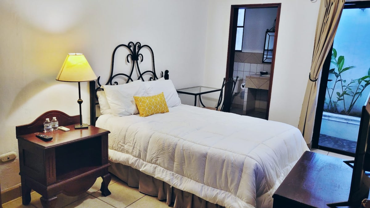 Su habitación Suite Standard, cuenta con la comodidades para los viajeros mas exigentes, Cama Queen con tecnología pillowtop, Smart TV de 43 pulgadas, servicio de cable digital, aire acondicionado, baño privado con amenidades(papel, toallas, shampoo, jabon, locion), ducha con agua caliente, mesas de noche, lámparas de noche con toma corrientes y usb, caja fuerte, armario y una relajante vista al jardin.