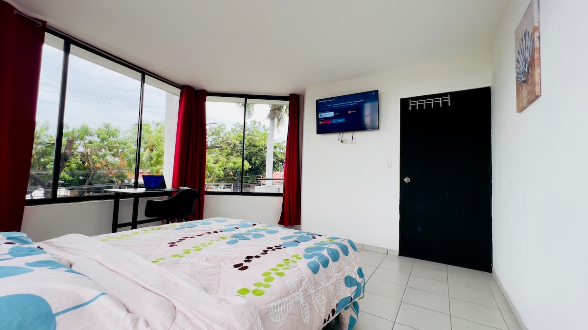 Es una habitacion iluminada, comoda, esta ubicada en un Reparto Privado, con Seguridad a la entrada, esta en una zona natural con arboles y en contacto con la naturaleza