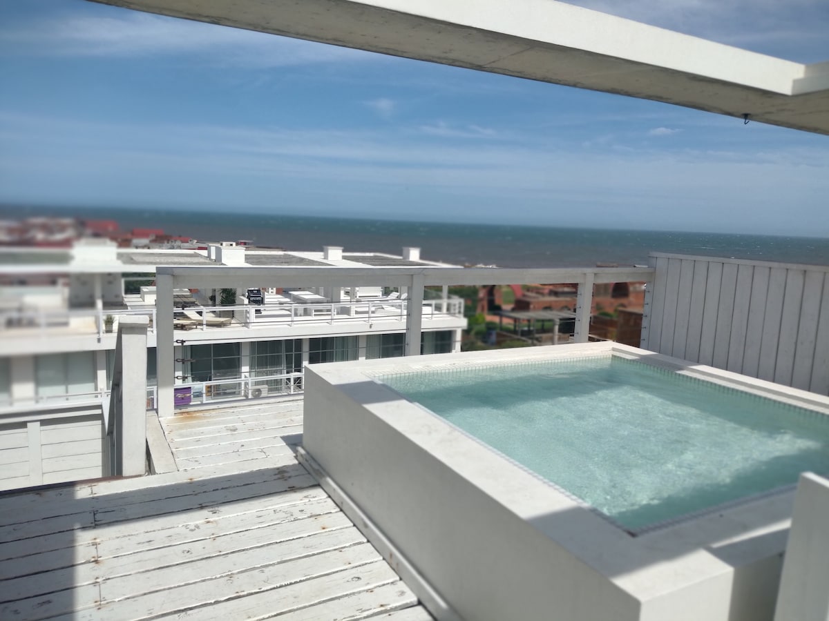 Piscina interior habilitada! Apartamento moderno, de lujo cómodo y completo, ideal para todo el año, a metros del Casino Conrad para disfrutar a pleno a 1 cuadra de la playa mansa. Con 2 dormitorios, 2 baños y toilette. Ventanales con vista al mar, terraza con jacuzzi propio. Este apartamento ofrece todos los servicios para que se sienta como en un hotel 5 estrellas (piscina climatizada, abierta, jacuzzi, sauna, gimnasio, canchas, playroom, barbacoa) servicio mucama y playa a diario.