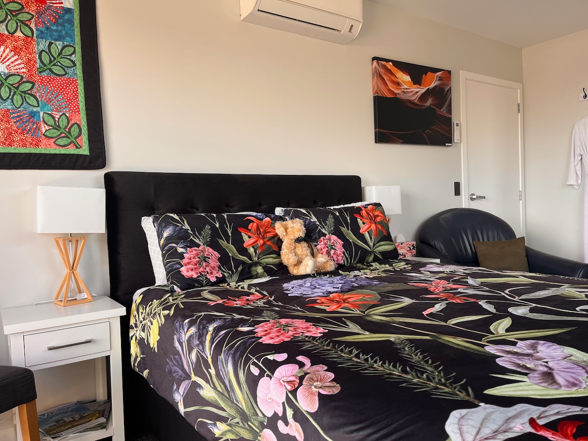 You can enjoy a private wing of the house with its own separate toilet, bathroom, lounge and kitchenette. Continental breakfast available.You will have a great Havelock North experience when you stay at this modern, stylish and cosy home with elevated, picturesque views of Te Mata peak and the Heretaunga plains. Semi-rural, minutes away from popular Birdwoods cafe and 5 minutes drive to Havelock North village.