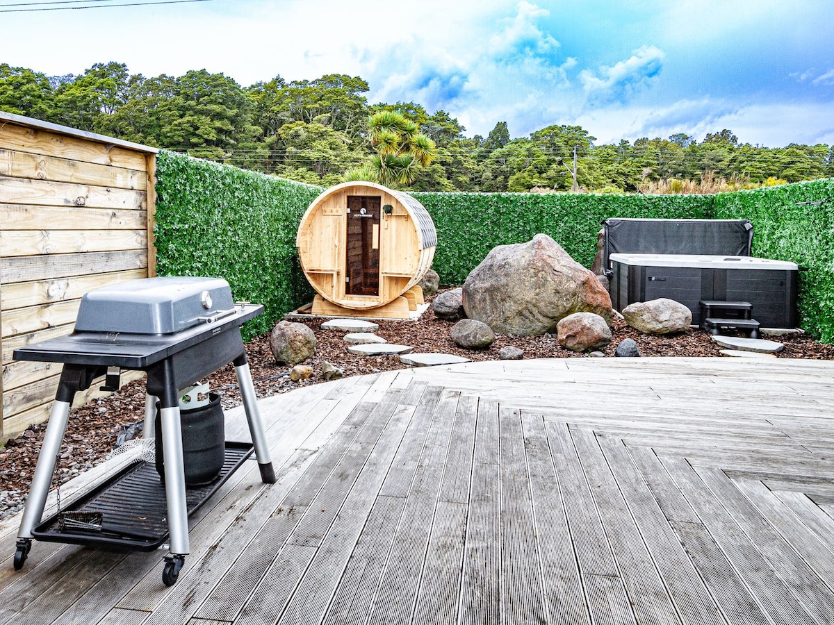 Escape to this beautiful 2-bedroom property; your private little paradise for relaxation and to get away from it all. Nestled in lush native bush, you'll wake to local kereru, tui, and fantails. Explore the surrounding grounds to find a private steam sauna, wander along the property’s stream to spot local tuna (eels) and glow worms or unwind in the serene Balinese hut. With expansive lawns and a peaceful atmosphere, rain or shine this is the perfect getaway for nature lovers seeking tranquillity