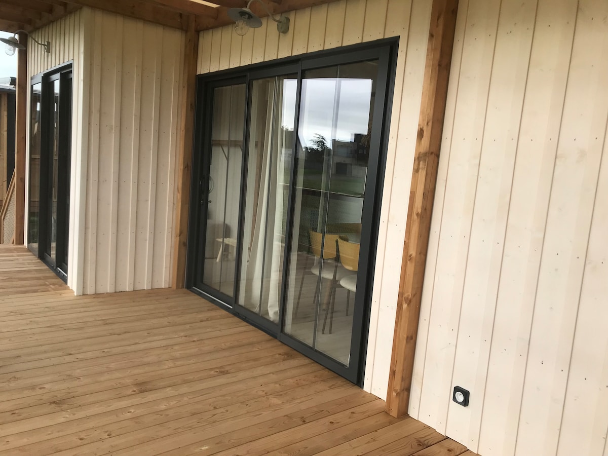maisonnette de ville récente (novembre 2020), style chalet très chaleureux et lumineux 32m2, 1 chambre avec un lit double, 1 canapé lit dans le séjour, salle d'eau (douche et wc) dans une rue calme, proche de tout commerces. 8 minutes du Mont Saint Michel. terrasse et jardin clos.