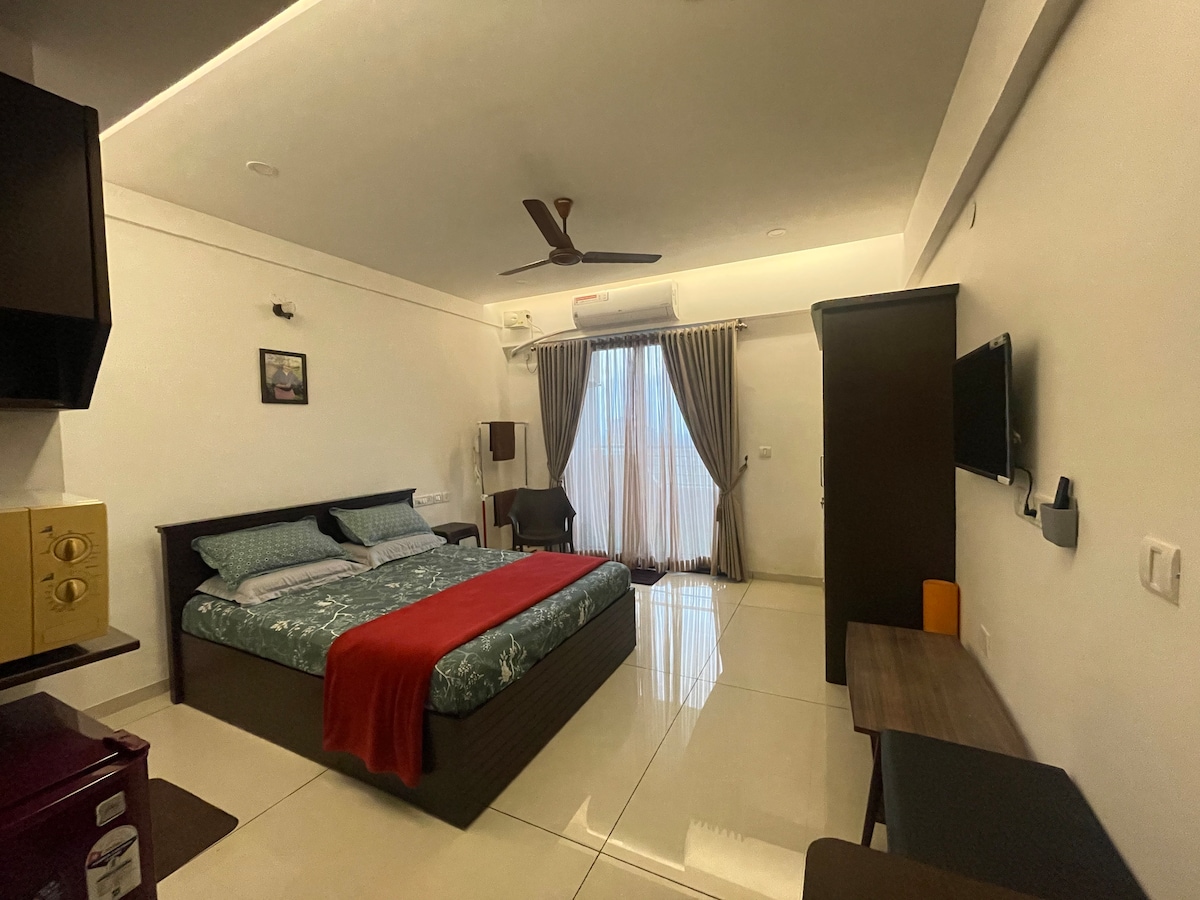 Guests can use all amenities in the apartment such as television , cooking ,washing machine, etc ...in case the stay is more than a week the power tariff will be according to the units used ..., cleaning charges whenever required will be ₹200