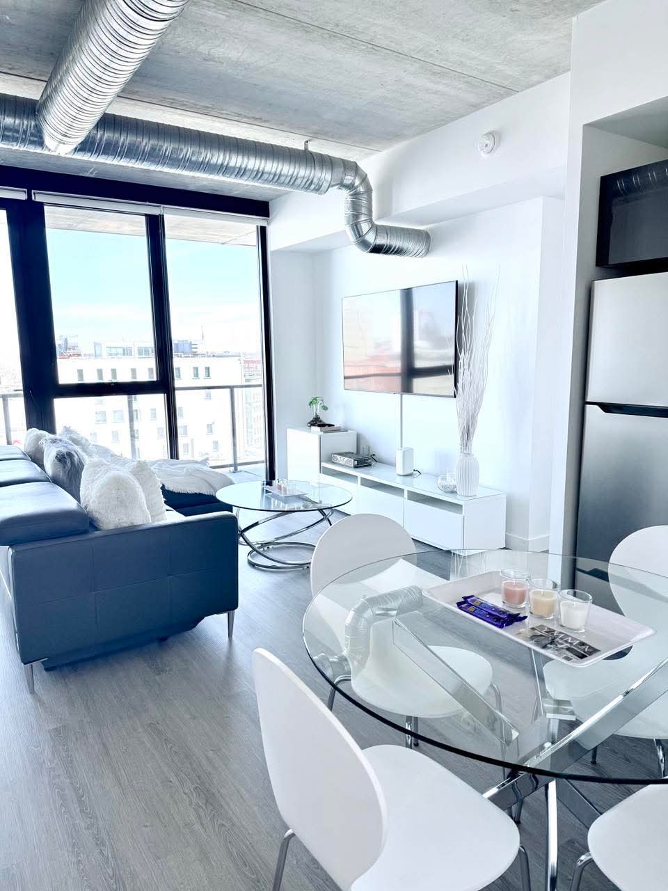 Be the first to experience this one bedroom and one bathroom modern condo right at the heart of downtown Winnipeg, just across Canada Life Centre. The home of the Winnipeg Jets! This condo boasts of a big balcony overlooking Downtown Winnipeg, an en-suite laundry and all brand new furnitures and appliances, equipped with a 65 inch TV. The building has a security from 4:00 pm to 8:00 am, a Gym , and a Rooftop Patio. Everything you would want for a comfortable stay right at the heart of the city!