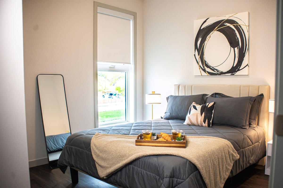 Experience modern elegance at its finest in the heart of downtown with our lovely high-ceiling apartment. Our location is unbeatable, just a short walk from the RBC Convention Centre and steps away from the iconic Canada Life Centre, making it an ideal choice for sports fans and business travellers. And when you're ready to unwind, step out onto your well-sized private patio for some fresh air and al fresco dining. Book now and experience the ultimate in comfort and style for your Winnipeg stay!