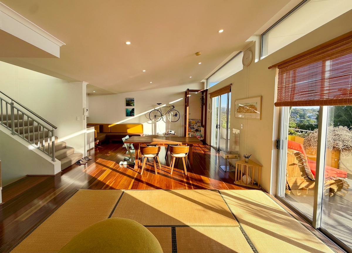 Set in beautiful tropical gardens, this spacious and secluded one bedroom apartment with Pittwater views is the ideal weekend getaway. The private entry leads to a large and light filled living, dining, kitchen area and separate queen sized bedroom with en suite. Both the living area and bedroom have louver windows to capture the summer breeze and open via glass sliding doors to the outdoor deck with Weber BBQ and views across the gardens and tranquil Pittwater.