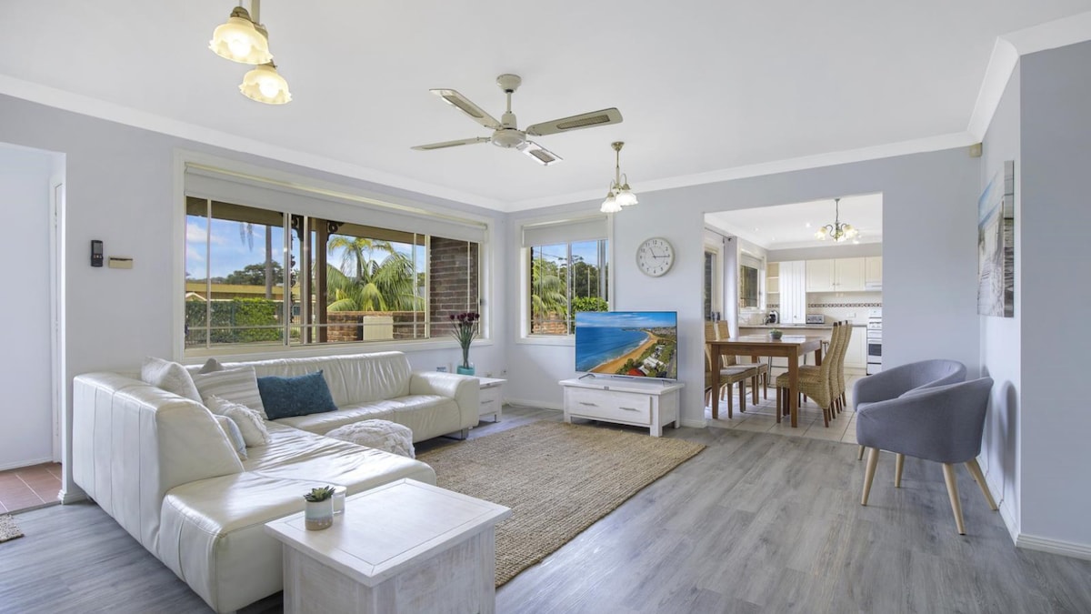 This classic, beach styled luxury holiday villa is ready for you to enjoy. Finished with luxury fittings and offering a beach vibe, you will feel on holidays right from the start. Just a 5 minute walk to the beautiful Ettalong Beach, and a short walk to shops, cafes, restaurants and supermarkets in Umina Beach.
