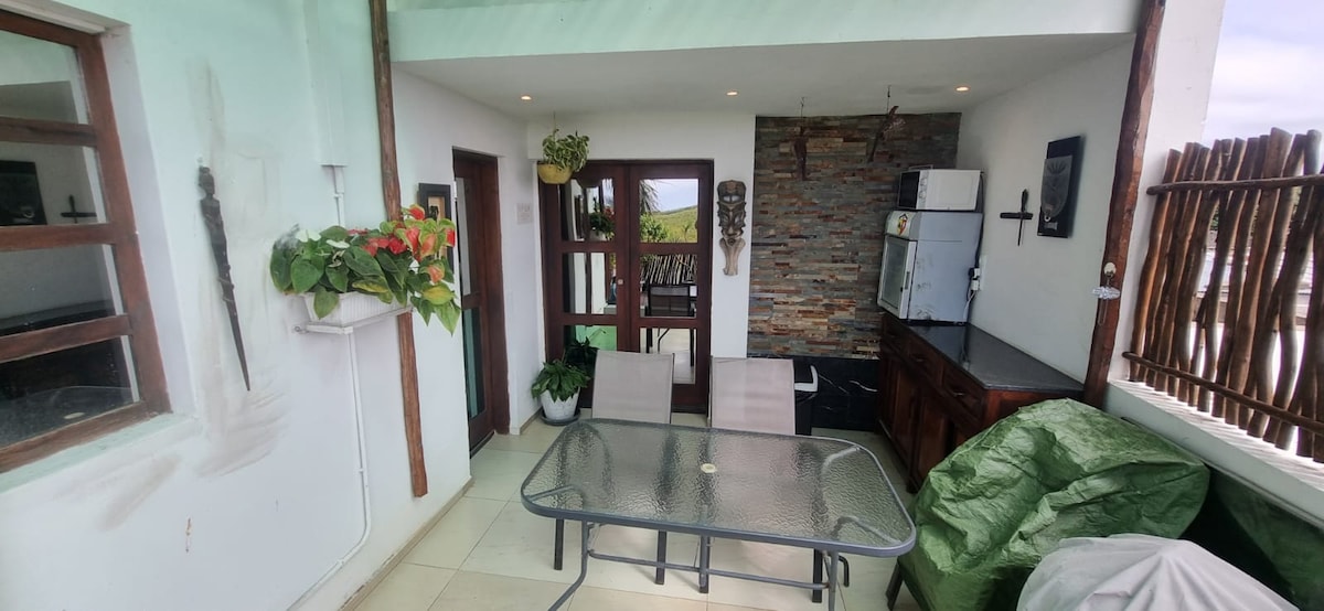 Vida Lenta is situated in the Baleia Azul estate in Ponta Mamoli. You will be greeted with a 180’ sea view. The famous Fredericos Shore snorkelling spot is situated only a few minutes walk along the beach from the house. All the rooms have air conditioning and ceiling fans. The open plan living area opens up to the large deck with dining area. The kitchen is equipped with the necessary appliances. Stove, microwave, fridges and stove