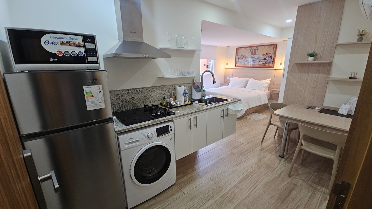 Es un excelente apartamento tipo estudio, ideal para parejas, se ubica en el municipio Mario Briceño Iragorry, parroquia Caña de azúcar a 10 min del centro de Maracay y aprox. a 1 hora de las hermosas playas de Ocumare de la costa y Choronì. El Estudio cuenta con: • 1 Cama Matrimonial o dos individuales • 1 juego de comedor • Cocina empotrada equipada con utensilios de mesa y cocina. • Nevera • Microondas • licuadora • Tv por cable • Aire Acondicionado • Closet • Capacidad para 2 personas.