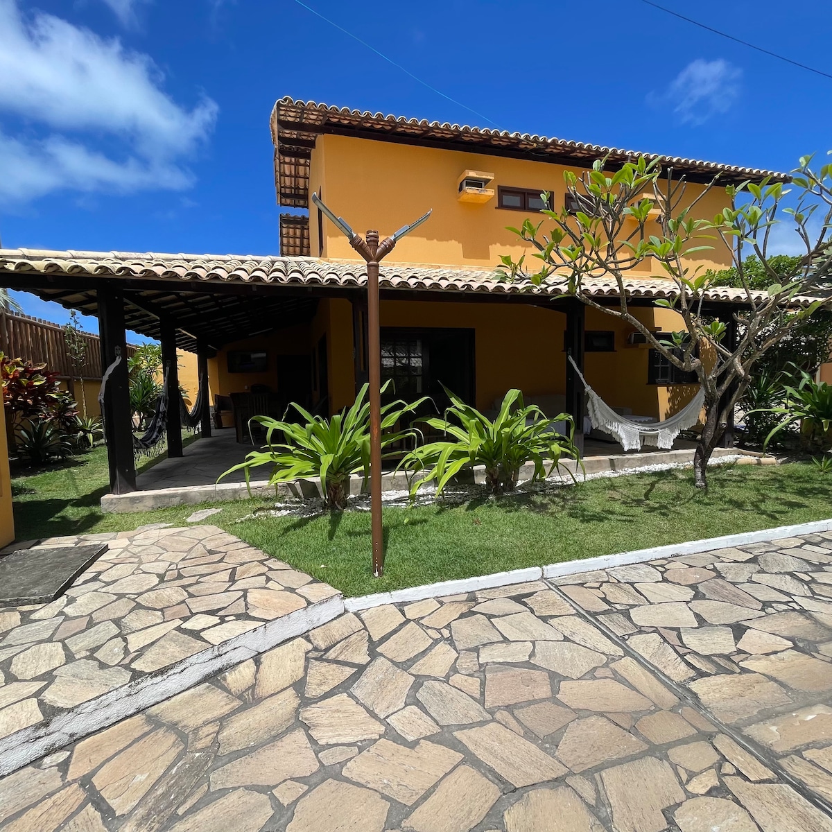 De frente para o mar, a casa acomoda 9 pessoas e possui excelente área externa, com churrasqueira, chuveirão e garagem. Sala com TV, sofá e mesa de jantar, cozinha equipada e área de serviço. 03 quartos (2 suítes com varanda). Todos os quartos possuem ar condicionado. 3 banheiros recém reformados e 1 lavabo. Casa fica em condomínio seguro, com porteiro, e excelente área de lazer com piscina. Fica próximo a um mercadinho e na rua do condomínio há uma deliciosa pizzaria.