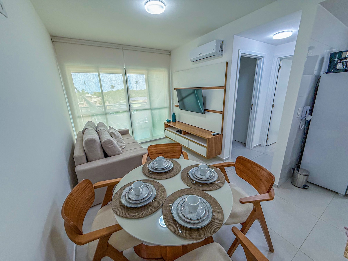 Um lugar aconchegante a poucos metros da Praia do Francês. Apartamento quarto e sala com varanda, mobiliado, quarto com uma camas de casal padrão + colchão extra, sofá cama na sala onde acomodam duas pessoas, banheiro, cozinha completa, TV, ar condicionado no quarto. Área de lazer privativa do condomínio com piscina. Desfrute momentos mágicos em uma das praias mais bonitas do Brasil, e a menos de 20 minutos de carro de Maceió.