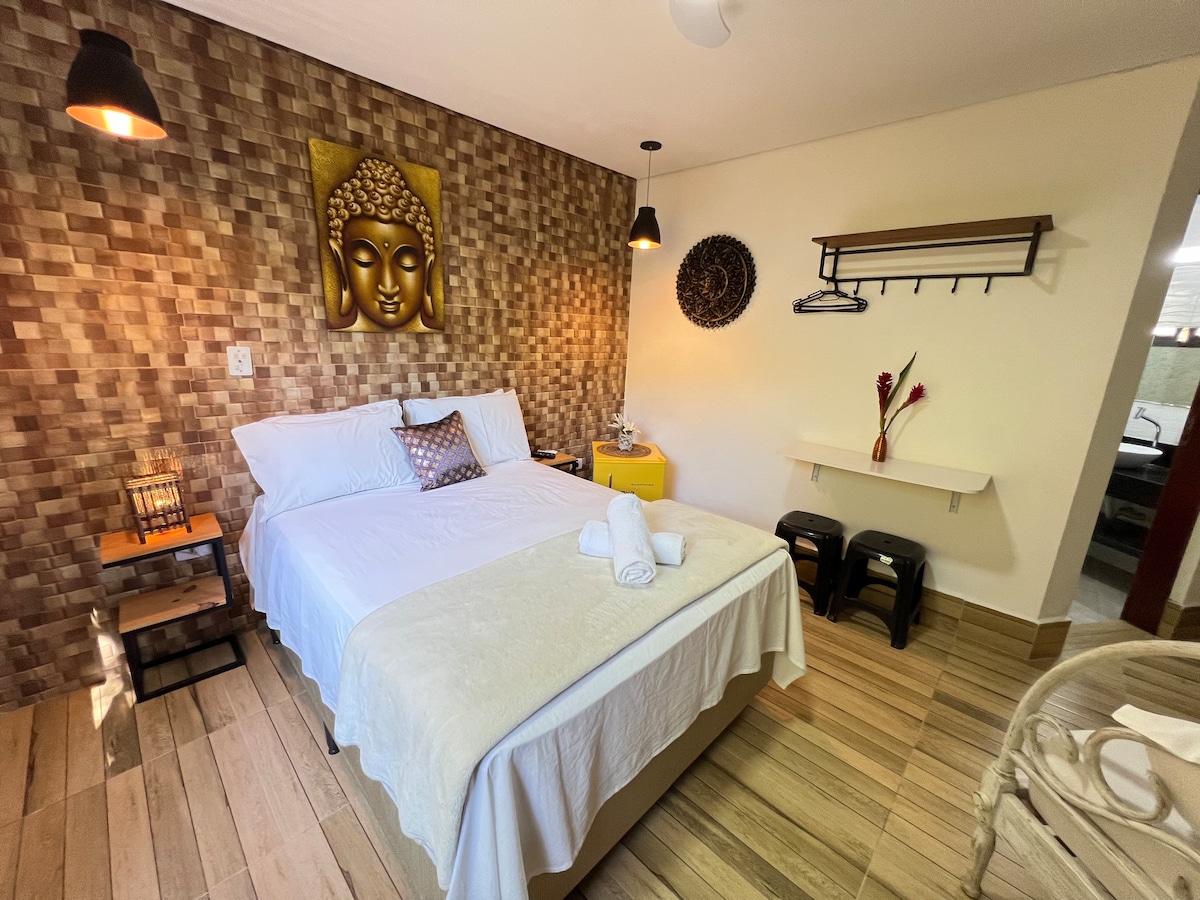 Encante-se neste lugar. Nossa pousada tem decoração balinesa! Acendemos velas e incenso todos os dias. Estamos no meio da mata atlântica e uma quadra da praia. Você vai se encantar com a decoração estilosa e o ambiente acolhedor. Desfrute de uma área de lazer com piscina, sauna com cascata, sala de jogos, academia, pista de skate e estacionamento interno. Oferecemos café da manhã cortesia (simples e sem custo) todos os dias para nossos hóspedes. Durante a temporada, novidades nesse serviço!
