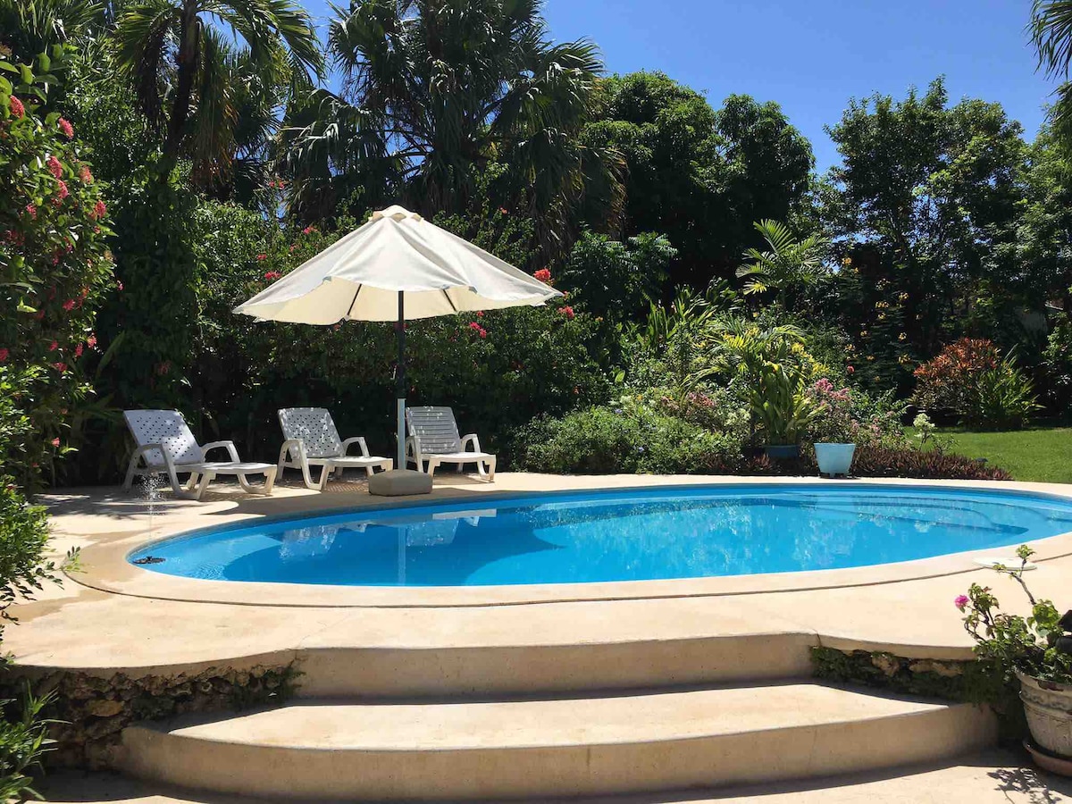 Come enjoy an unforgettable tropical vacation at Casa Baldoria. Located in the town of Cabrera, our centrally-located home offers modern and comfortable accommodation for peaceful and joyous living. The upper unit has 3BR, 1 bathroom, a spacious, flower filled private terrace and balcony overlooking the gardens. You will will be in a tropical paradise! You will have privacy as you enjoy the pool, gazebo, and expansive gardens.