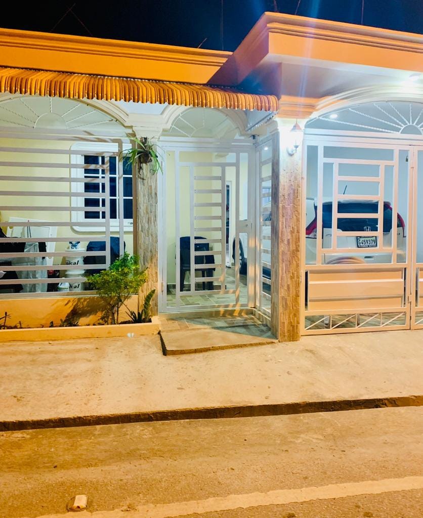 Relájate con toda la familia en este alojamiento donde la tranquilidad se respira. Un lugar ubicado a un minuto de la Ave. principal que comunica a Nagua, Cabrera y Rio San Juan. A 5 minutos de la playa de Arroyo Salado, a 10 minutos de la laguna DUDU y a 10 minutos de la playa El Diamante.