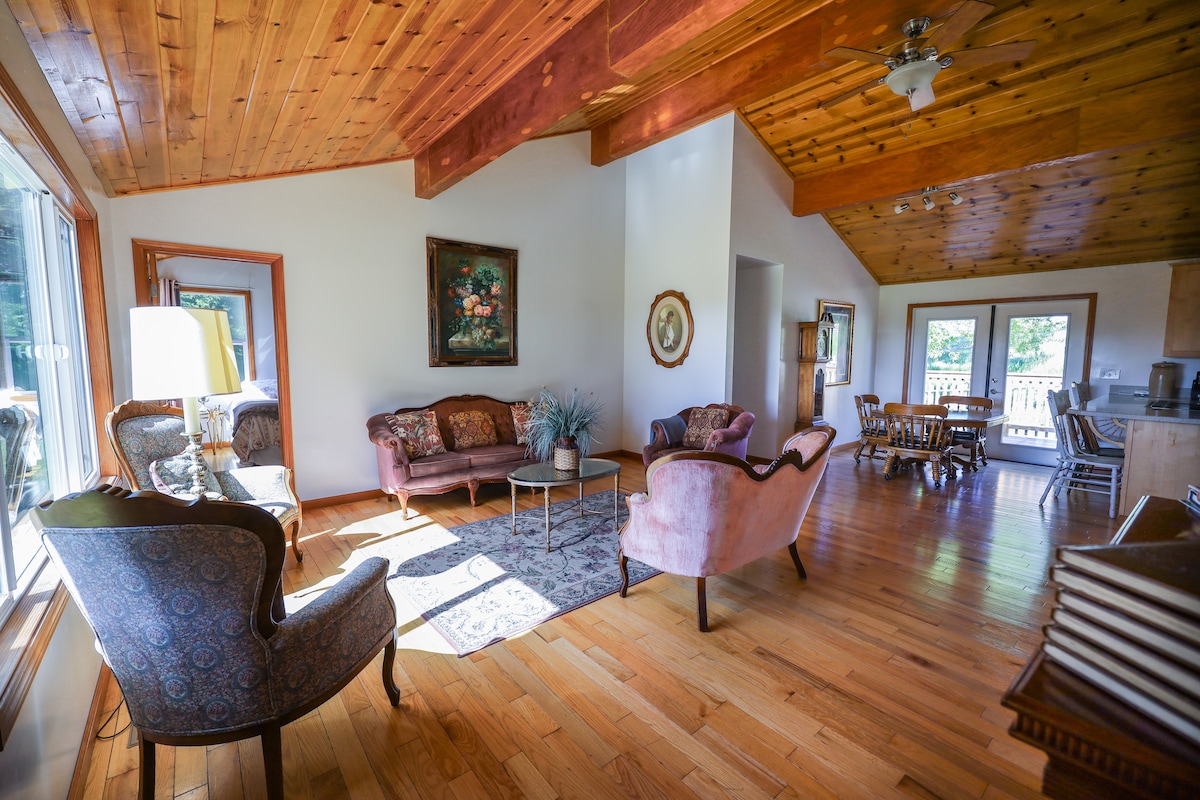 Modern and spacious with glass enclosed porch, high ceilings and lots of French doors, skylights and windows. Close to town in the very nicest area within a mile of downtown, walkable, or bikeable with my cruiser bikes. You’ll love the views, the location, the goats, quail running around and delicious cafe next door. We just lost our mini horse 7/27 :( we had 16 years, sorry if you had planned on meeting him, it was a sad loss for us.