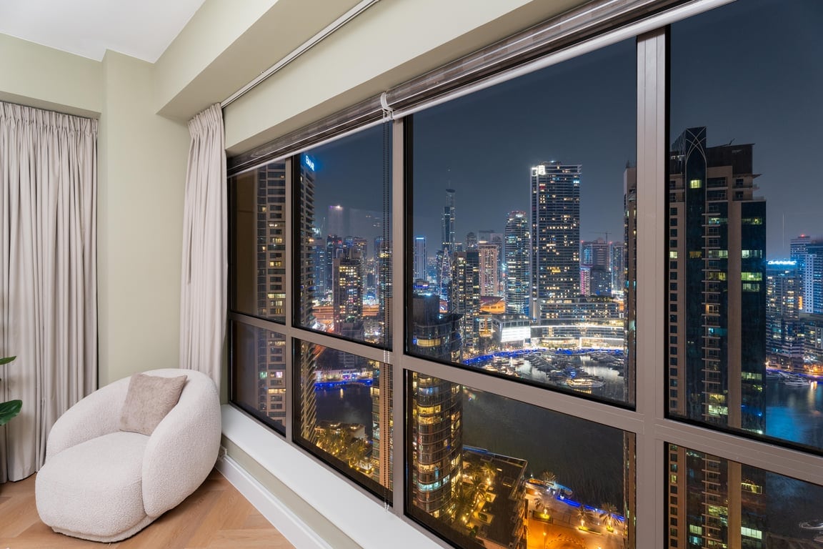 Located on the 27th floor of a modern high-rise in Dubai Marina, our one-bedroom apartment offers easy access to the famous Dubai Marina Walk, filled with restaurants, lounges, and spas. It is a mere 8-minute walk from JBR The Walk and the beach. Whether it's a stroll along the beach, a gourmet meal, or an indulgent spa treatment, everything is just a stone's throw away.
