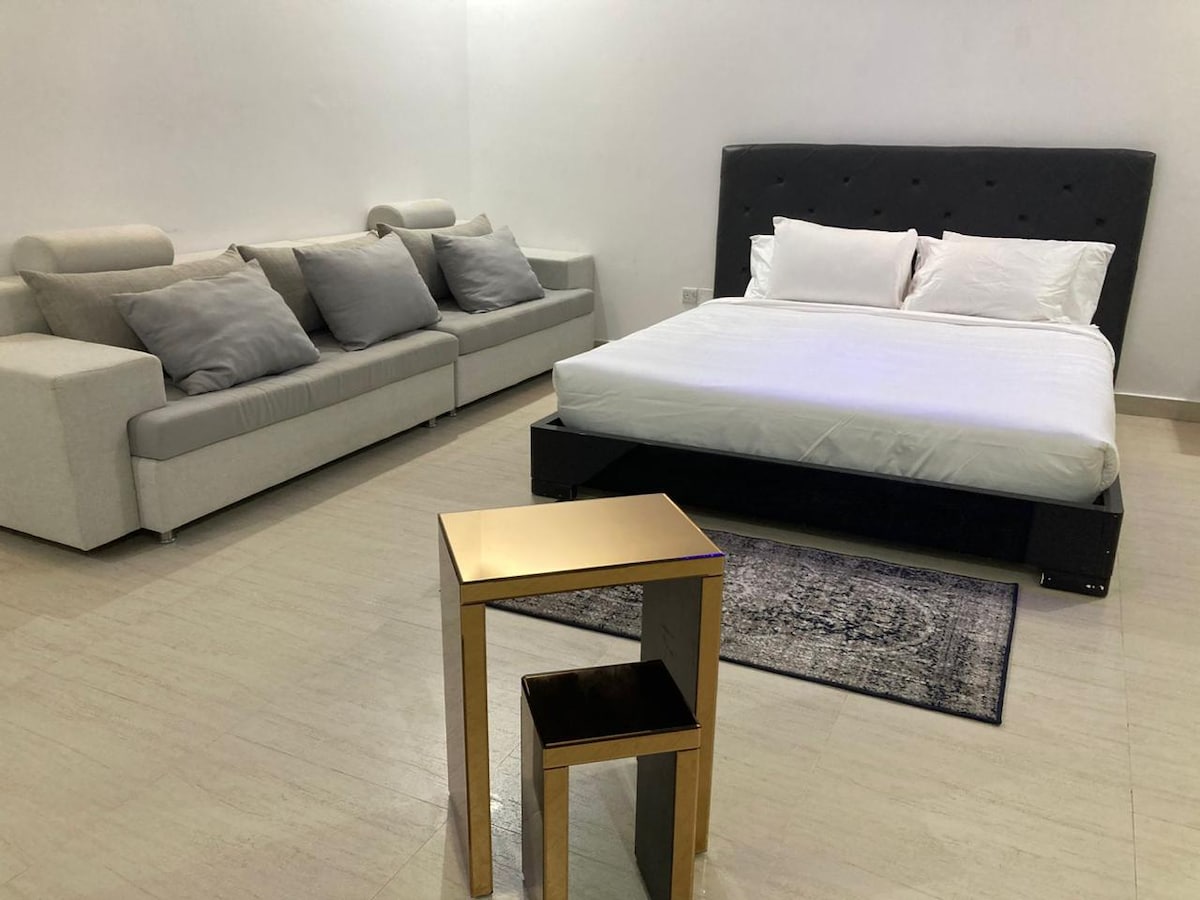 Right near Intercontinental Marina Hotel (less than a minute away), peaceful, centrally-located apartment (42 sqm size) at the heart of Marina with a full view of Marina bay and partial view of the beach. It’s 5minutes walk from the tramway station and JBR walk and is 10minutes walk from the famous JBR beach as well as Dubai Marina mall. You have restaurants, supermarkets and pharmacies downstairs all of which can deliver to your doorstep.