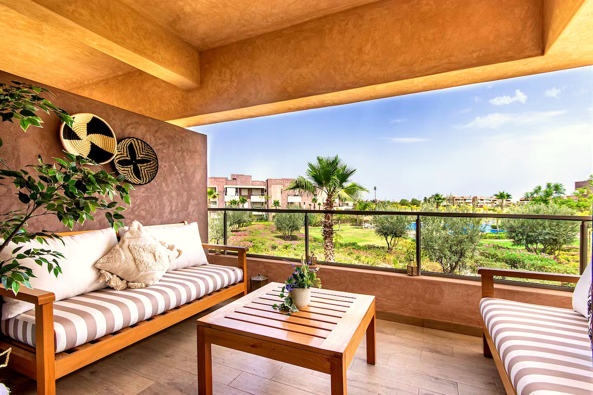 俯瞰游泳池、高尔夫球场和阿特拉斯山的超棒公寓