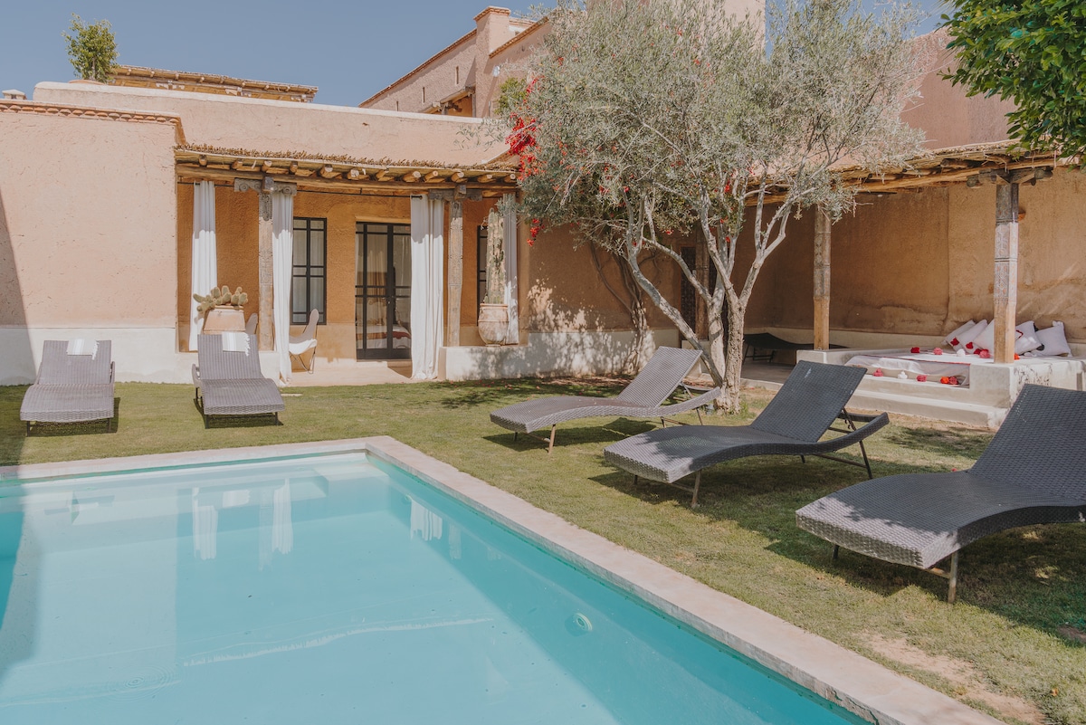 Dar Iklane : Une oasis de sérénité dans une oliveraie d’un hectare. Vous l'apprécierez pour ses grands espaces, sa piscine de 60m2 et sa terrasse panoramique. Sans oublier notre généreux petit déjeuner berbère, les délicieux plats de Aïcha, les bons produits de notre potager et la compagnie de Luna, Fluffy et Lucky nos trois caniches. Une base idéale pour visiter les environs de Marrakech, explorer la sublime vallée de l'Ourika et ses villages berbères ou s’aventurer dans le désert d’Agafay.