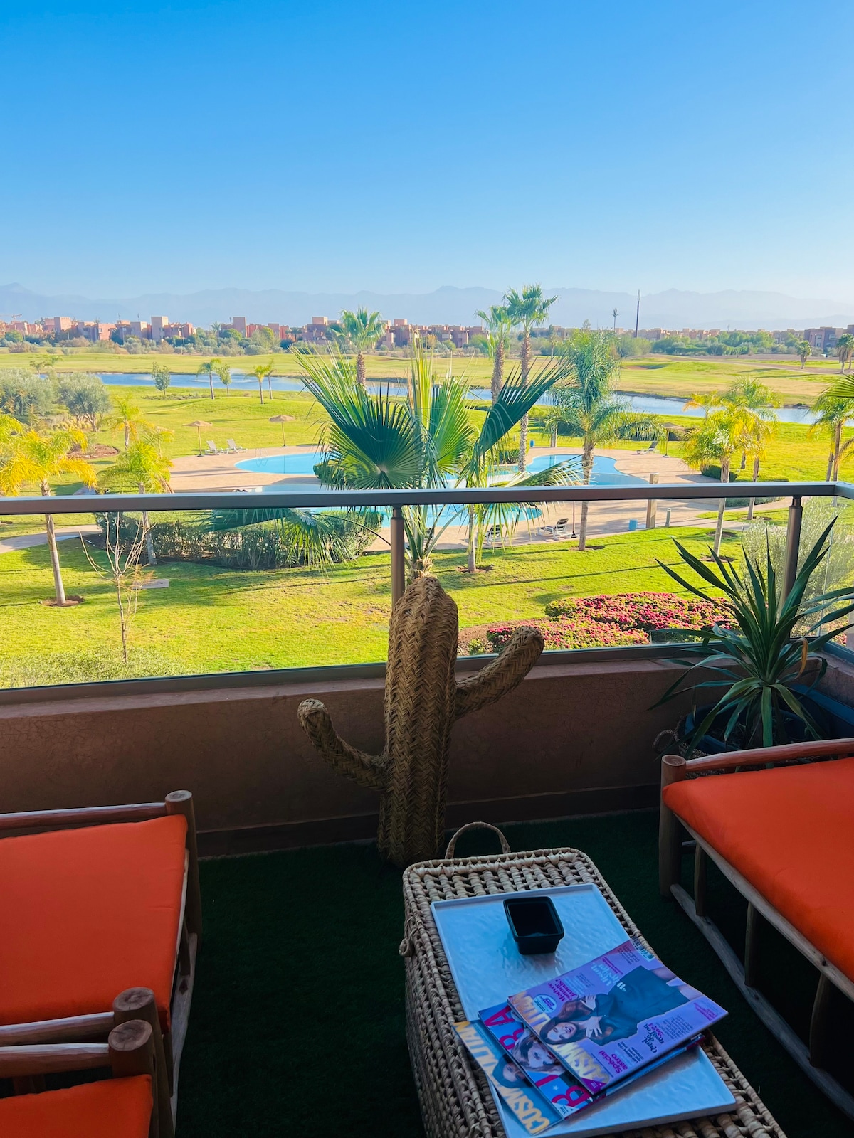 C’est en plein cœur de la célèbre palmeraie village de Marrakech que se trouve notre joli appartement. Ce dernier, se situe dans une résidence calme et magnifiquement arborée de 40 hectares. Piscines et terrain de tennis sont disponibles. C’est l’endroit parfait pour se réunir entre amis ou avec de la famille pour partager des moment agréables dans un cadre relaxant . 10 minutes du centre ville de Marrakech. 20 min de l’aéroport Service ménage et cuisine disponible moyennement un supplément.