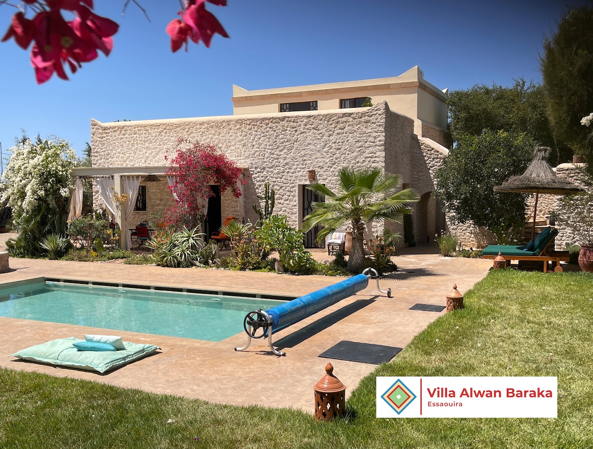 VILLA ALWAN BARAKA est entièrement privatisée pour vous. Elle allie le charme traditionnel "Beldi" et tout le confort moderne. Personnel de maison quotidien le matin. PISCINE CHAUFFE (option-selon saisons). LOCATION AUTORISEE: TVA, Taxes de séjour, Cotisations sociales, Assurances, incluses. Entretien jardin-piscine, ménage et préparation du petit déjeuner sont assurés (avec vos courses) et, en option, vous pourrez faire cuisiner vos repas. Fibre optique / WIFI rapide / Situation idéale.
