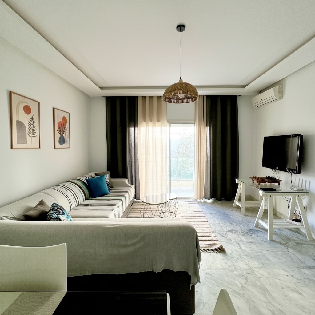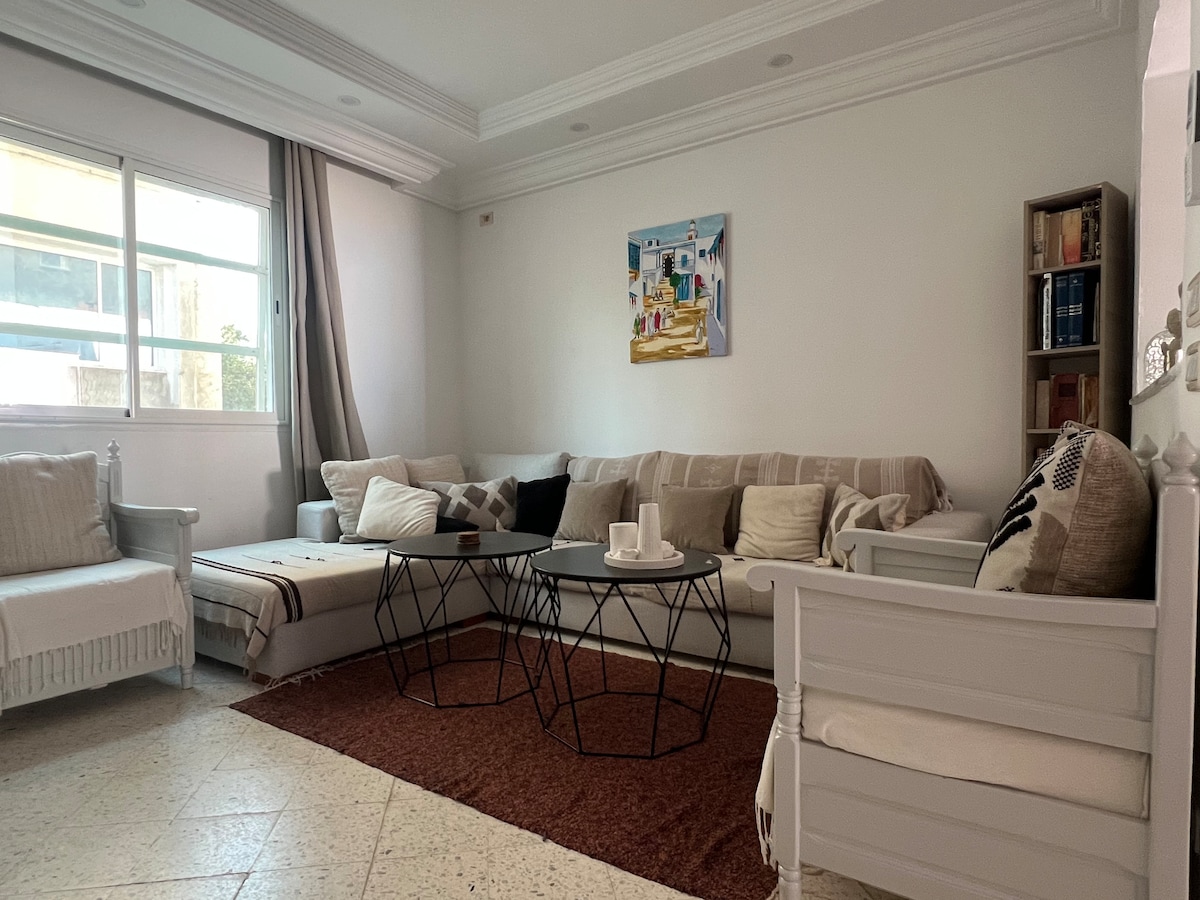 Profitez d'un logement propre élégant et central au cœur de la Marsa à 7 min a pied de la plage , plusieurs commerce à proximité .L'appartement est situé au premier étage et comprend un balcon. Il est simple, confortable, moderne et lumineux. En entrant dans l'appartement, vous pouvez trouver une cuisine ouverte bien équipée . Cet appartement est parfait pour accueillir jusqu'à quatre personnes dans un environnement moderne et fonctionnel.