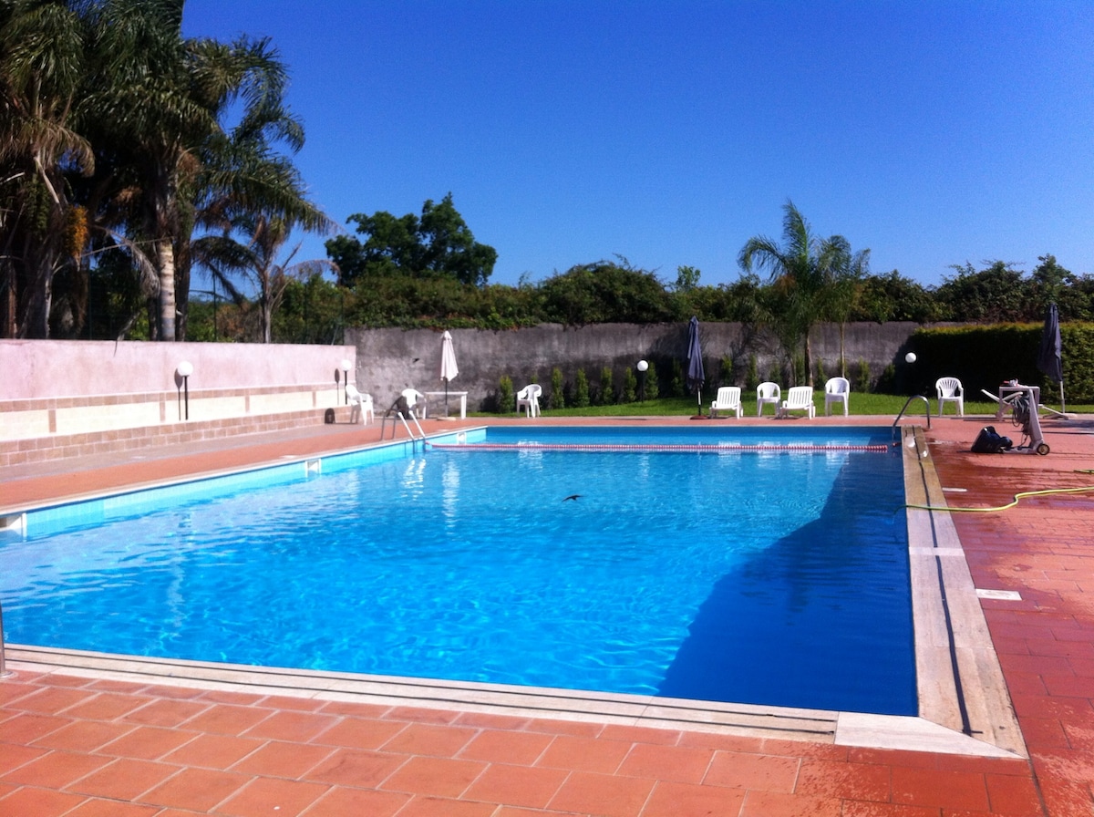 Azzurro Mare :埃特纳火山、陶尔米纳、大海、共用泳池