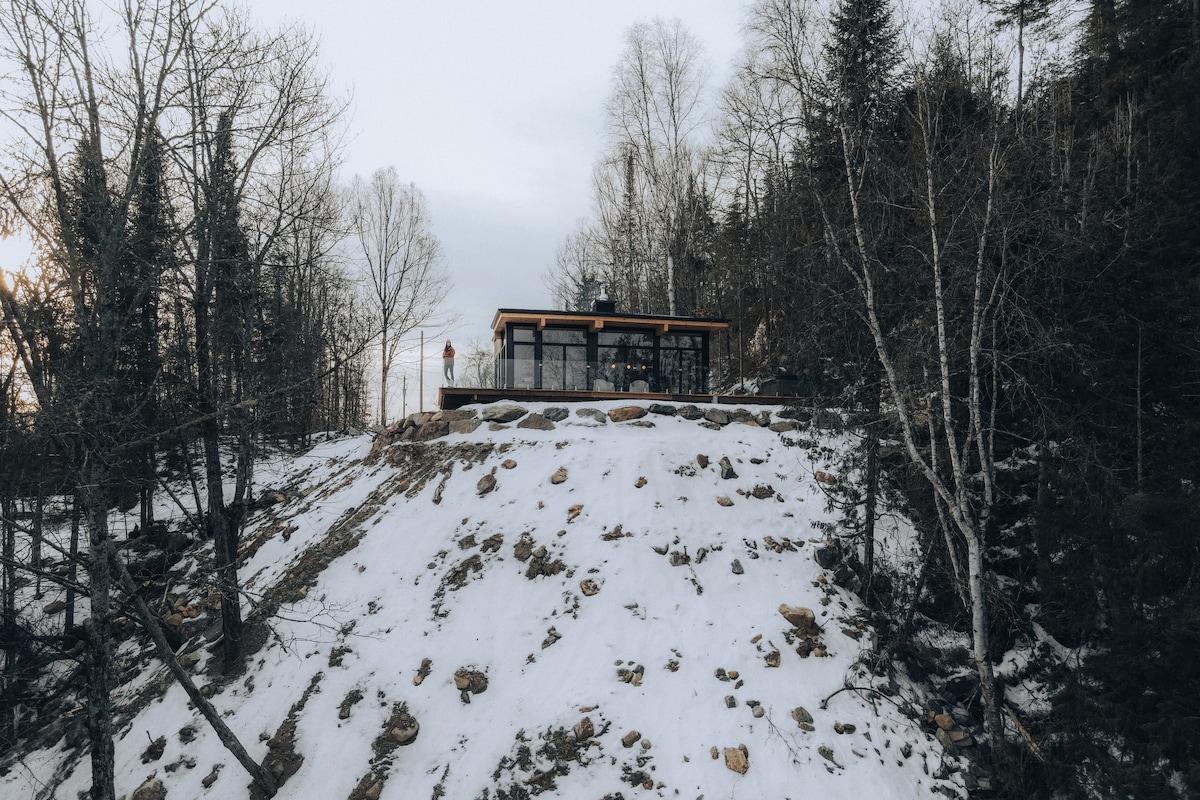 Contact us for our On-going Promotion! Skÿe Tremblant is a private, Luxury Glass Cabin & Spa escape on the Tremblant mountainside. The cabin is majestically glazed architectural space combining natural simplicity and contemporary luxury, 10 min from village of Mont-Tremblant and Ski Mont-Tremblant. On the end of the cliff, in the treetops with a fully glazed living space, enjoy the Panoramic terrace, hot tub for relaxation experience. In shared domain of 1200 Acres. Renowned Canadian Designer.