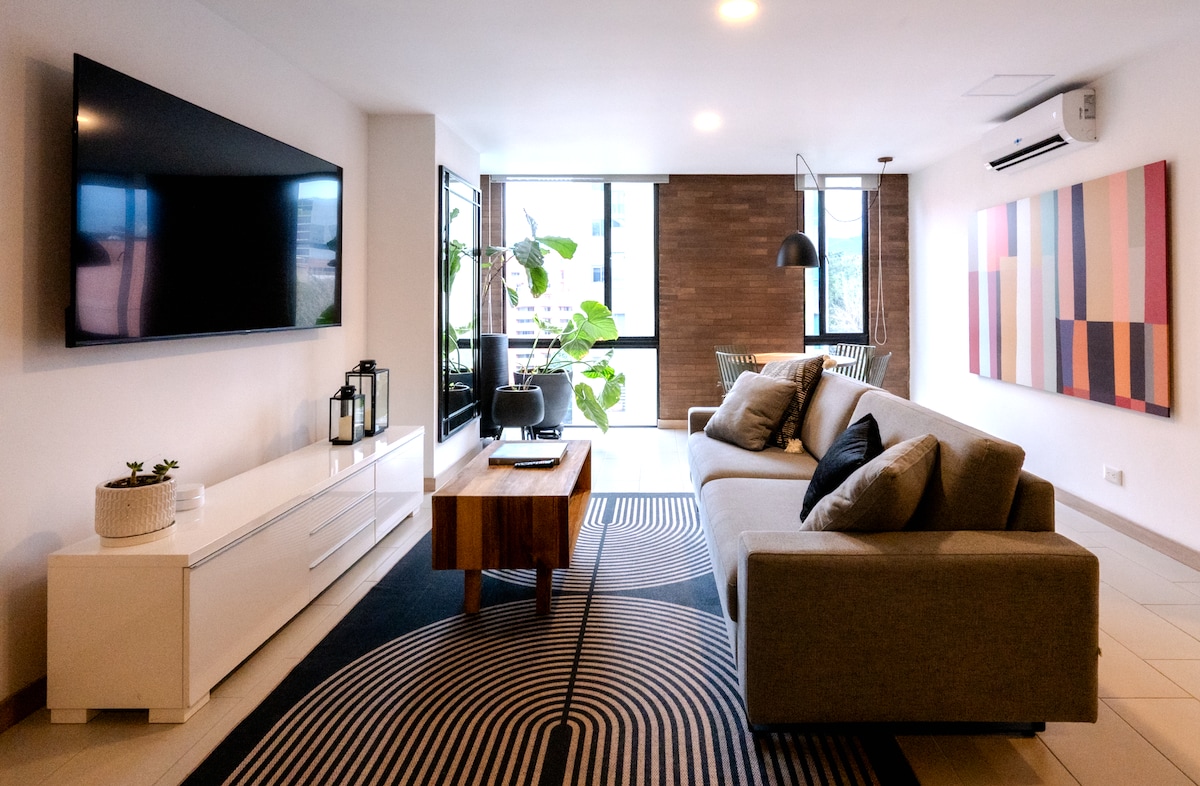 Brand new building (Hotel Urban Studios) & luxury apartment located in the best sector of El Poblado (El Tesoro), is perfect if you are looking for a peaceful and beautiful space. - Luxury interior design, furnishings - Spectacular views from Living Room, Bedroom, & Office - Full Washer & Dryer - Air conditioner In the Bedroom - 55¨Smart TVs LG - 200GB+ Wifi - Heated Pool & Jacuzzi - Steam Room - Complete modern gym - 24-hour security