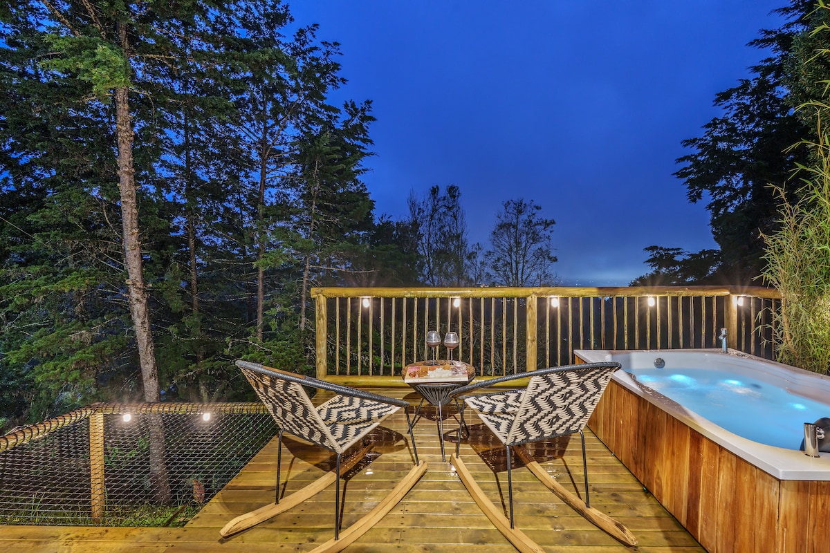Discover an exceptional retreat surrounded by nature, where every detail is designed to offer you an unforgettable experience. This cabin combines elegance and comfort. Relax in your private jacuzzi while enjoying breathtaking panoramic views in a serene environment. Perfect for a romantic getaway or rejuvenating vacation, you will find the ideal harmony between privacy and natural beauty. Your perfect escape awaits!