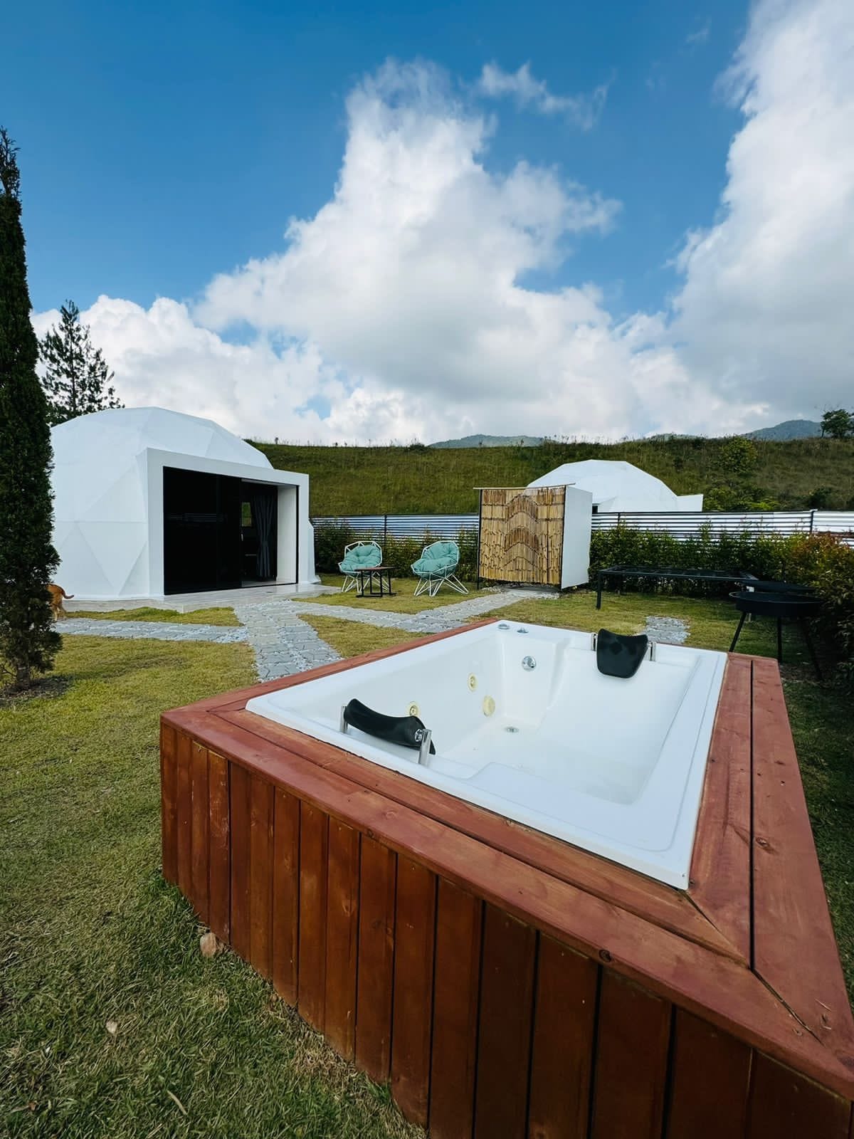 Disfruta de una escapada única en nuestro exclusivo domo con jacuzzi privado, rodeado de naturaleza. Ofrecemos servicio de cena y desayuno incluidos en el precio. Relájate en nuestra cómoda cama queen y disfruta de la vista desde nuestro deck panorámico. Báñate en el jacuzzi privado al aire libre y desconecta del estrés de la vida cotidiana. ¡Reserva ahora y vive una experiencia inolvidable en la naturaleza!"