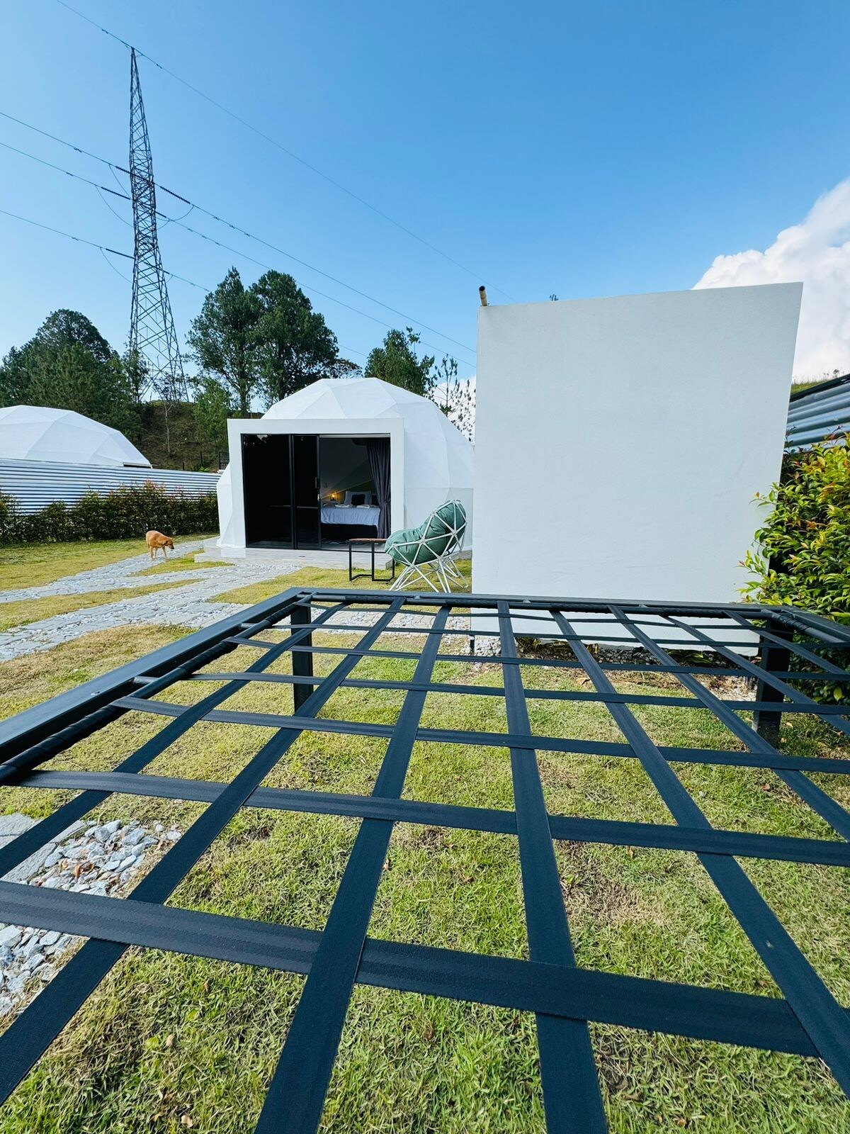 Hermoso Domo - Glamping ubicado junto a reserva natural. INCLUYE: Cama King• Cocina equipada• Baño privado• Agua Caliente• Jacuzzi privado• Sofá y escritorio• Deck con mobiliario• Televisión• WiFi 300 MBP• Fogata autoservicio• Asador-BBQ a gas• Parqueadero gratis. COMIDA PARA PREPARAR O DE RESTAURANTE, LICOR, MEDICINA Y CASI CUALUQIER COSA SE PUEDE PEDIR A DOMICILIO Y LO LLEVAN HASTA LA PUERTA DEL GLAMPING. RNT: 162437