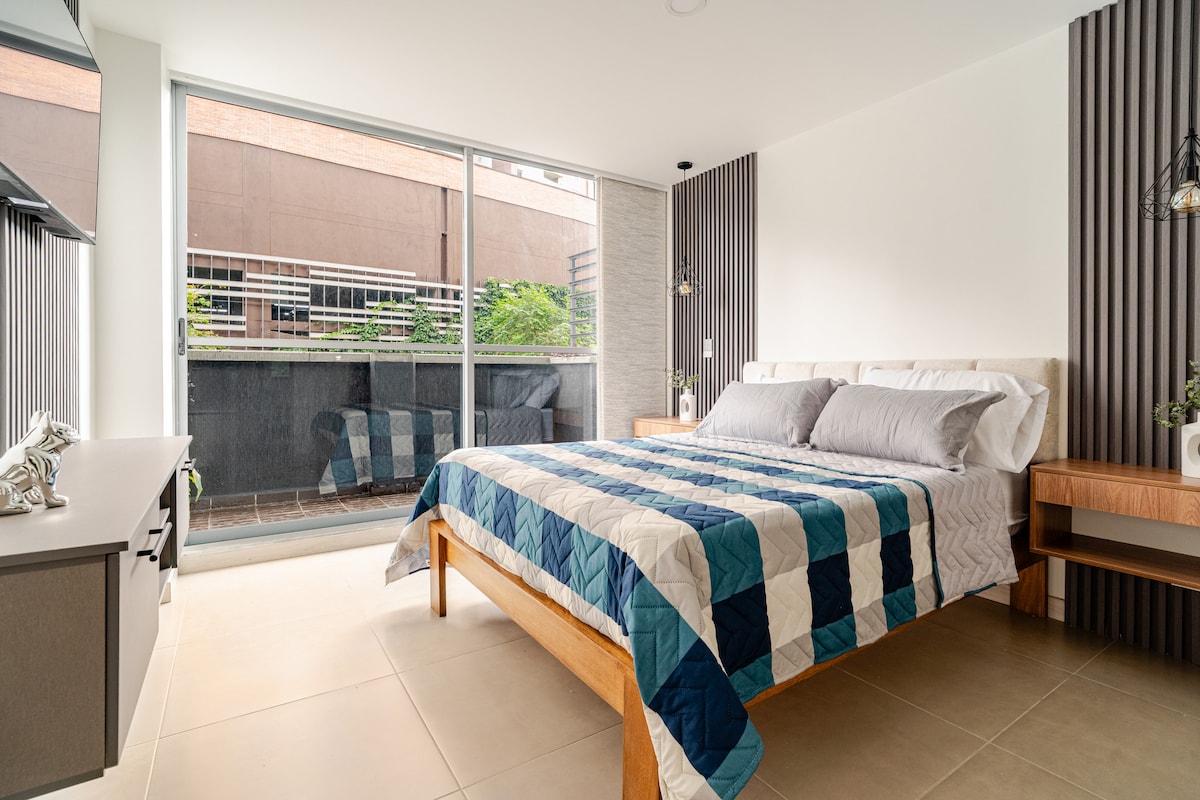 Take it easy at this unique and tranquil getaway. This beautiful, modern new 50 m² studio is ready for you. Near from ATMs, Grocery stores, Restaurants, and Cafes. 10 minutes walking to the night party in Provenza and Park Lleras. King bed, A/C, Netflix, amazing view from 14th floor, gym in the building, parking load, security 24/7. *Zero tolerance against sexual tourism. *Please see our house rules. *If you are Colombian resident you must pay IVA 19% additional.
