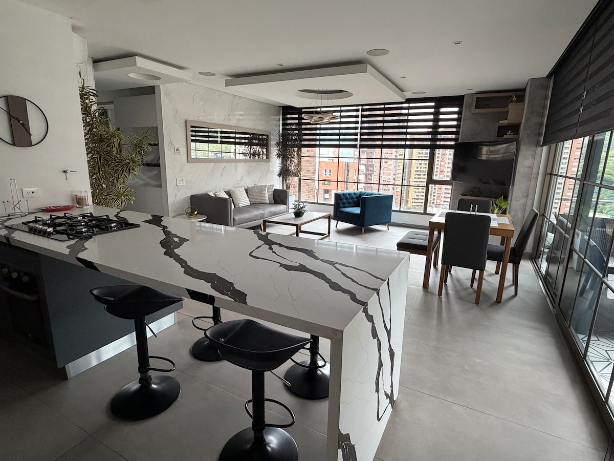 RECENTLY RENOVATED -High-speed internet great for remote work -Brand new A/C -Fully renovated Industrial design apartment -King size bed -Breathtaking views of Medellín (trust me, worthwhile to stay here) -19th floor -Unbeatable location in Poblado near to Provenza and Lleras Park -Modern amenities -Spacious living area -Smart TV x 2 -Fully equipped kitchen -Washer & Dryer Tower -Pool -Gym -Coworking space -Restaurant inside the building -Private parking -Self check-in -24/7 Security