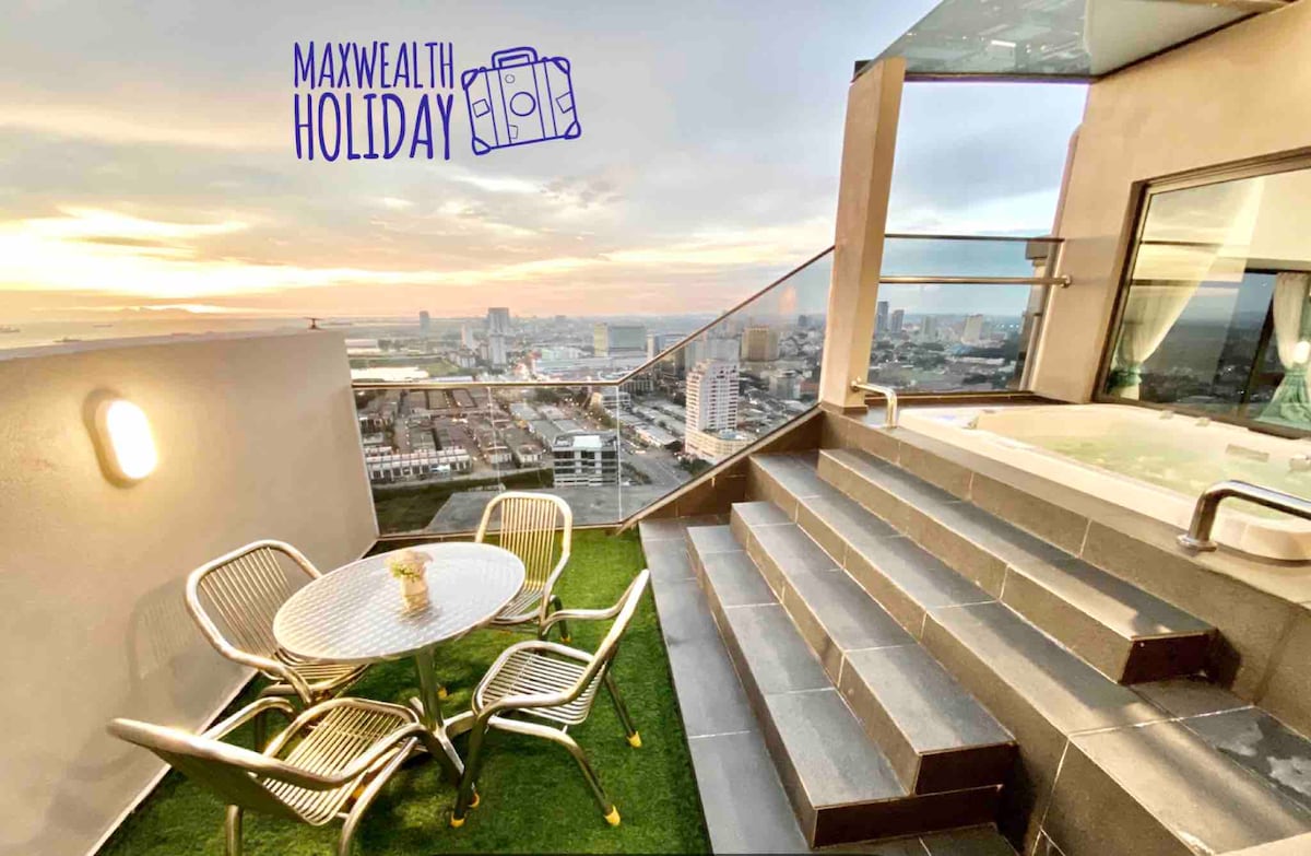 Max Wealth Holiday Management Private Jacuzzi Villa • Super Nice City View Private Jacuzzi Pool • Private Dip Pool with Normal Temperature Water • Bed Room with King Bed • Super Single bed in Living Room • Balcony with Super City View • Comfortable design • 869 square feet Located in the heart of downtown , near to the tourist attractions and famous restaurants in Melaka . 马六甲开放式家庭式套房(4人住) • 舒适的设计 • 附带阳台 • 869方尺空间 •客厅以及浴室及私人泳池 坐落在甲市中心,地理位置优越 -旅游景点以及著名美食近