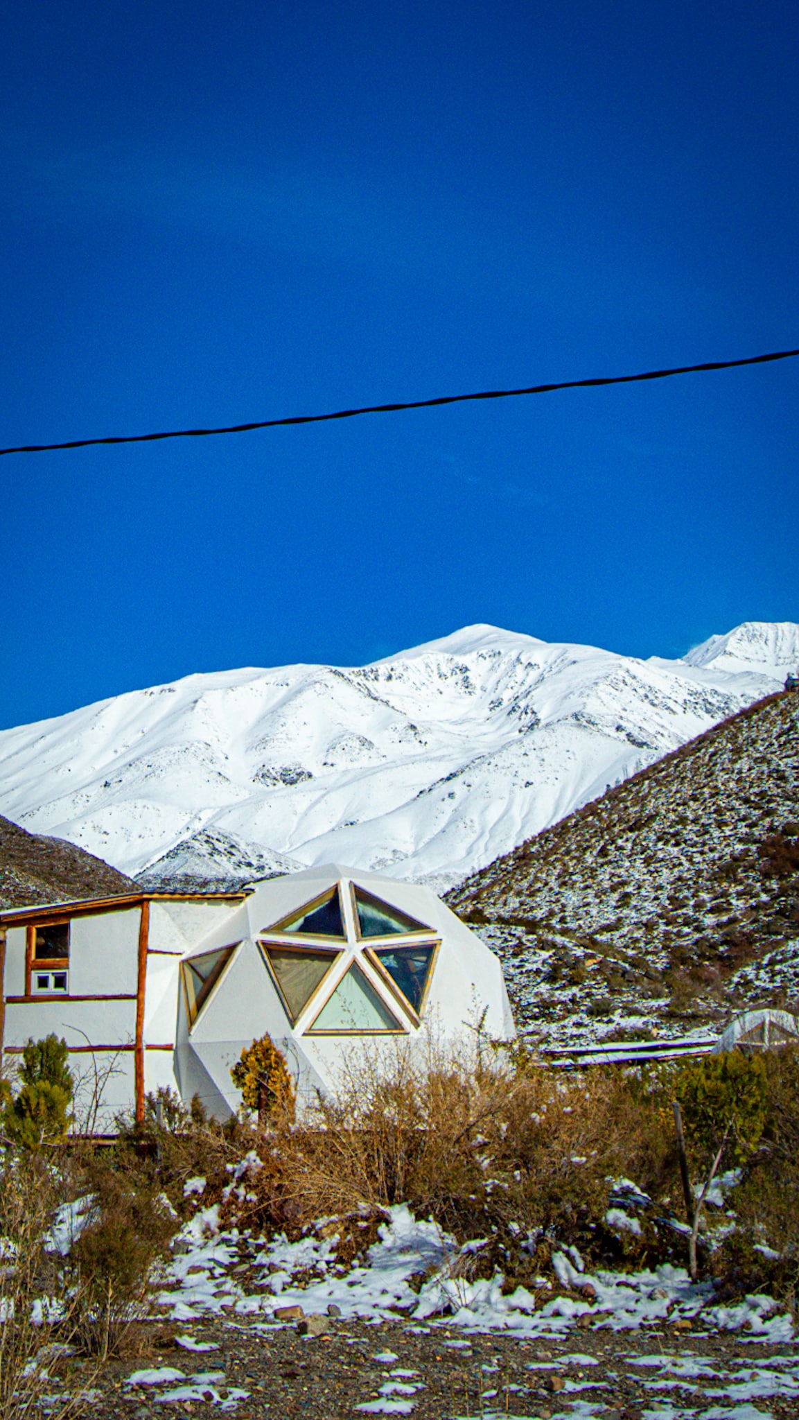 Glamping de montaña con domos geodésicos en el Valle de Uspallata, Mendoza. Vistas infinitas de la Cordillera de los Andes. El domo tiene baño privado y cama matrimonial. Agua caliente Calefacción a leña Kitchenette WiFi Electricidad 220V Desayuno incluido Jardín privado Piscina tipo tanque compartida Servicio de venta de comidas Durante el día el domo suele ser caluroso. Te invitamos a disfrutar de los espacios exteriores: bosque, arroyo, jardines. Leer abajo para más información
