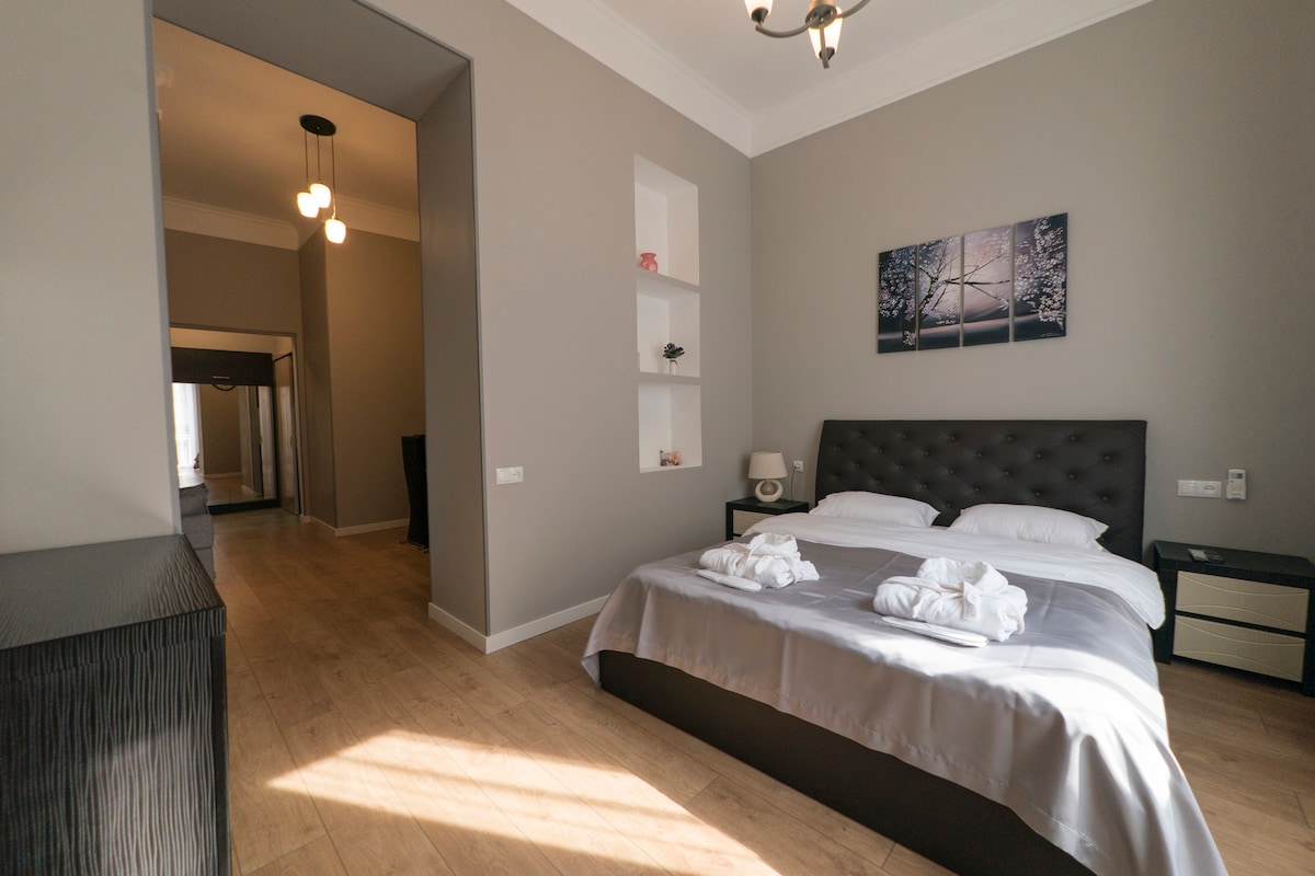 This beautiful apartment has excellent location In the heart of old town, 50 meters from Freedom square. Hope you will love and appreciate this beautiful and comfortable apartment, tastefully decorated, fully equipped and well-stocked. Place is located on the first floor of the old, historical building in Italian style yard. whole apartment is yours! We provide sheets and towels. In the kitchen you will find coffee, tea etc. Professional cleaning guaranteed!