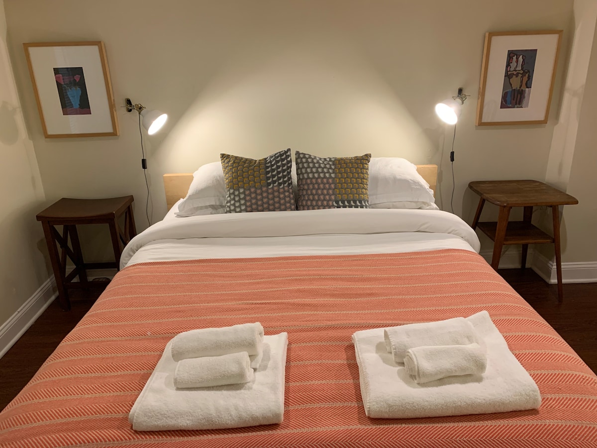 私密、宽敞的地下室套房;位置优越
