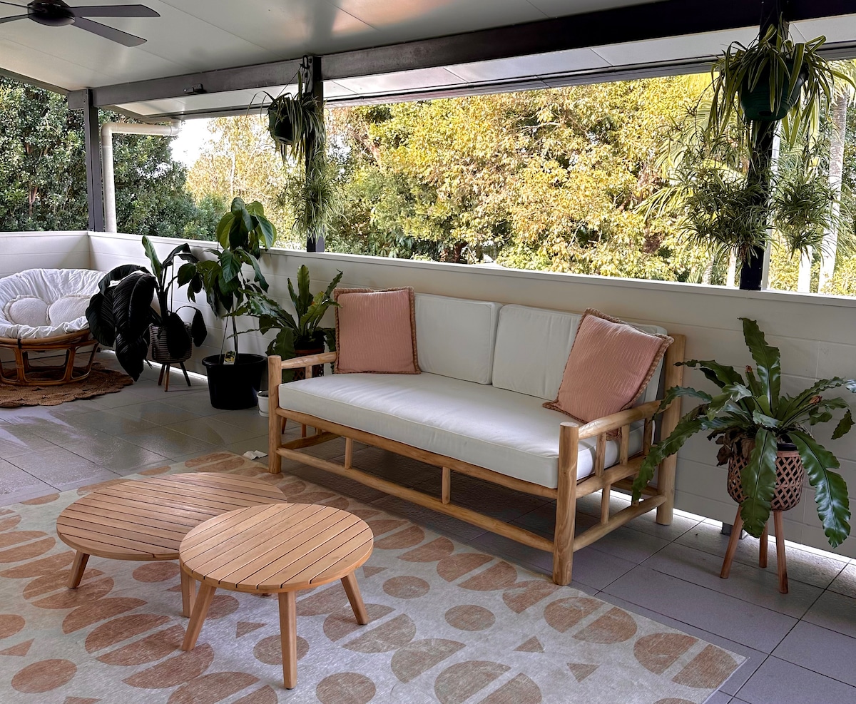 Welcome to The Cabin, a guest-favorite Airbnb nestled among trees with glimpses of the ocean, offering a serene escape just 7 minutes from Burleigh Beach, vibrant shops, restaurants, and bars. Savor a chic dinner out, then return to unwind with wine and marshmallows by the cozy fire pit. This romantic retreat boasts a stylish stone fireplace (non-wood burning), captivating interiors, and lush outdoor gardens with multiple tranquil spots to relax and recharge.