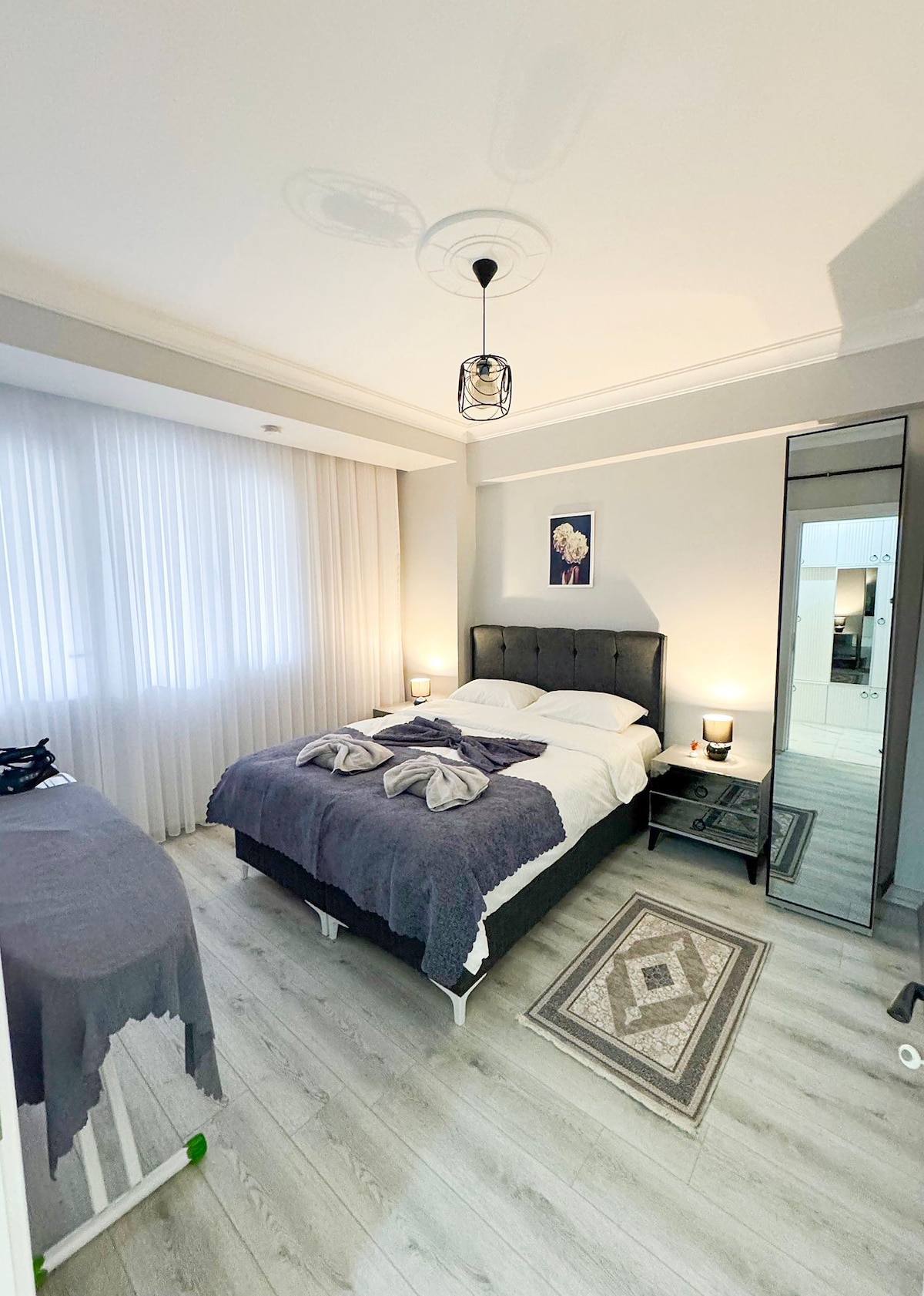 Merter'e çok yakın, şehrin nabzını hissedebileceğiniz modern ve konforlu bir daire! Tramvay istasyonuna 100 metre mesafede, alışveriş merkezlerine yakın, tam donanımlı bir konut sizi bekliyor. 🏠 Mekân Özellikleri: • Yeni ve güvenli bir binada • İki yatak odalı, 6 kişiye kadar konuk kapasitesi • "Oturma odasında Klima" ve hızlı wifi • Tam donanımlı mutfak 📍 Lokasyon Avantajları: • Tramvay istasyonuna 100 metre • Marketlere ve restoranlara yürüme mesafesi • 30 dakikada turistik bölgelere ulaşım