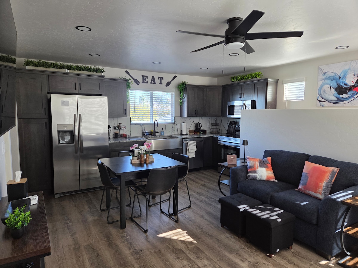 This newly constructed "Green" home is a mix of modern and country styles and will surely inspire you to enjoy all of the outdoor activities the Grand Valley has to offer. The Perfect Day Getaway house is located on a quaint farm within 8 minutes of world-class hiking, mountain and road bicycling, and river rafting. It is a great launching point for day trips to Moab and the Grand Mesa as well! It was built to maximize the southern exposure and views of the Colorado National Monument.
