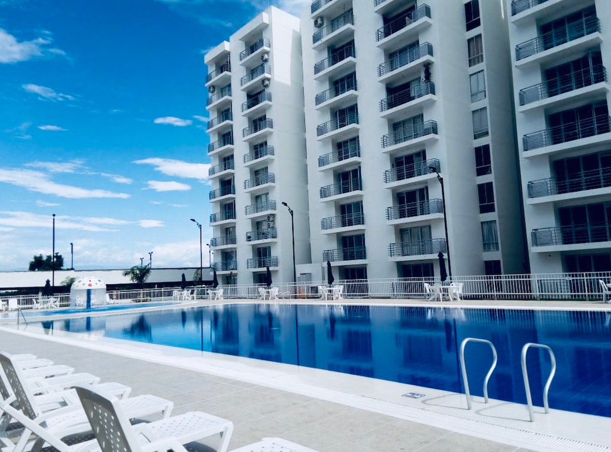 Espacio Unico Hacienda Peñalisa Ricaurte,cuenta con una habitación principal con cama doble ,baño,TV y AC,la segunda con dos camas sencillas y ventiladores,sala comedor con TV y AC,sofá cama doble,cocina con todos los utensilios y electrodomésticos necesarios,lavadora y secadora, internet satelital, el cual se maneja con una sim card; parqueadero privado,piscina,gimnasio ,salón de juegos,muy buena ubicación y con un MUY BUEN PRECIO PARA DISFRUTAR UN APARTAMENTO DE LUJO!!!!