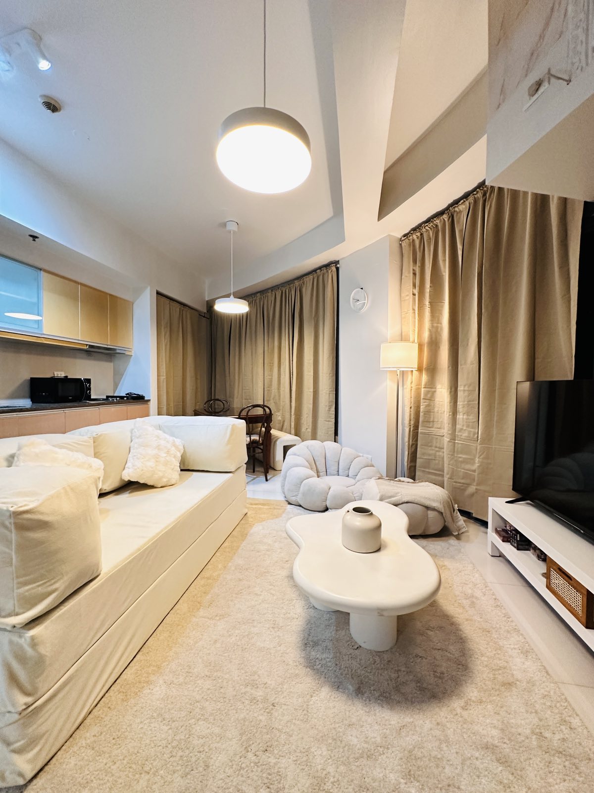 Escape to a high-floor suite with breathtaking BGC skyline views, cinematic JBL surround sound, and a 55-inch Full 4K Smart TV with LED mood lighting—your ultimate movie night haven. Take in the scenery with high-grade binoculars, then sink into the ultra-comfy Emma® Cloud-Bed for a perfect night’s sleep. Far from city noise yet close to everything, enjoy fast WiFi, Netflix, Disney+ and more! Truly a fully equipped space for a seamless, unforgettable staycation experience with Cinema 27!