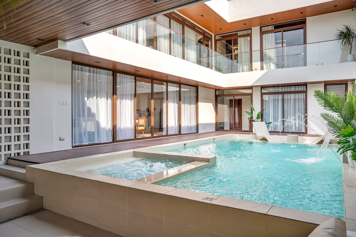 Enjoy The Tropical Villa at Villa Mina, your beautiful escape from the hustle and bustle of the city. Perfect for gatherings & celebrations or if you simply just want to cool off! 🌴 Enjoy: - Private swimming pool (4ft) with water feature - Chic interior design - Outdoor BBQ grill - Air-conditioning - Sofa & Loft-type Beds - Hot showers - Free parking for two cars - Smart TVs with Netflix - Wi-Fi - Kitchen with cooking tools - Karaoke & board games We have more rooms! Inquire to find out 💙