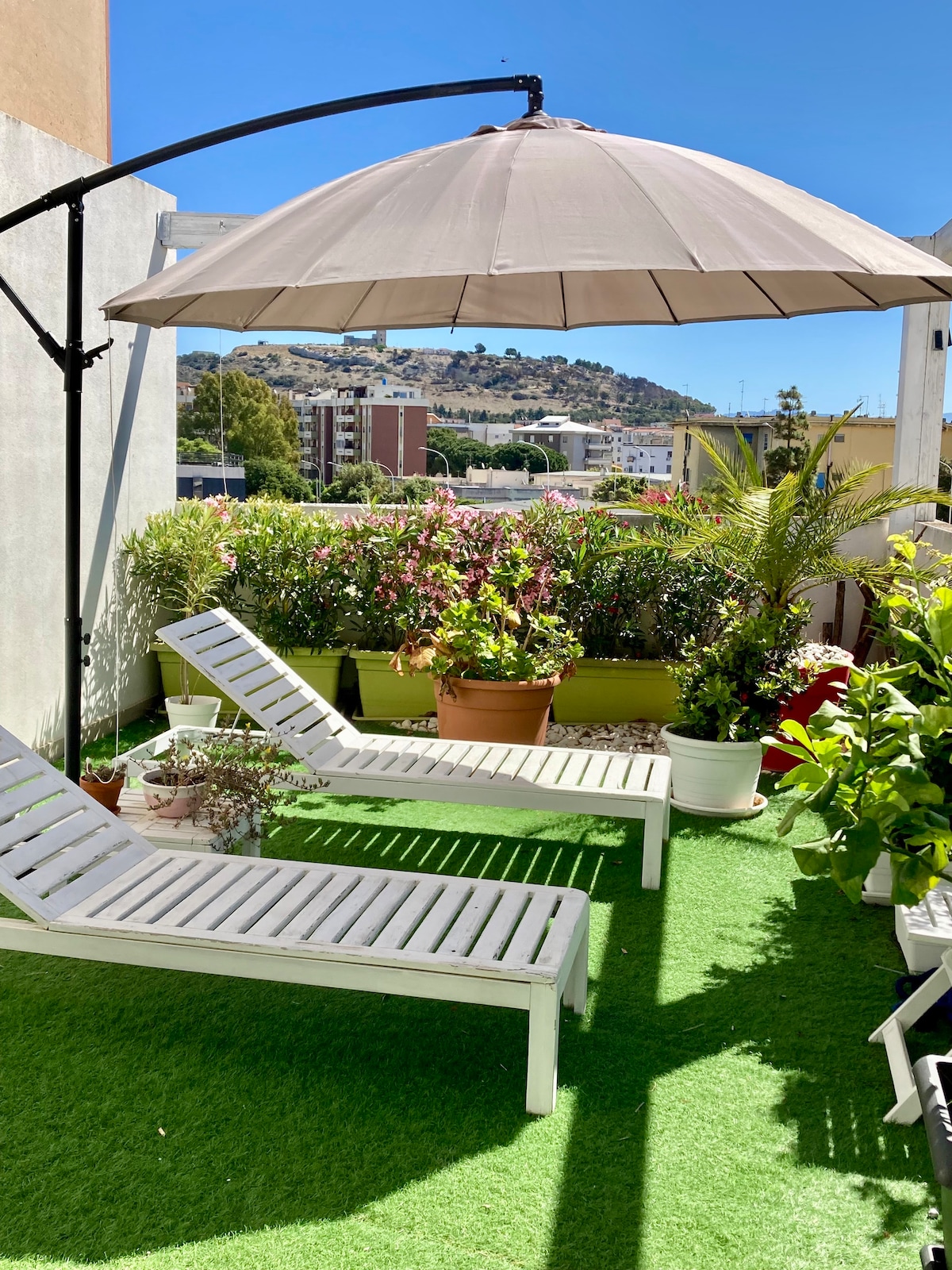Un attico, pressi Piazza Yenne, composto da 1 camera da letto 1 sala ingresso, con un divano letto matrimoniale 1 bagno ed 1 angolo cottura! Nella splendida terrazza è possibile fare colazione o cenare godendo del suggestivo panorama sulle mura dell'antico Castello,con le due torri, dei vecchi tetti, incorniciato dal mare. Attrezzato di tutti i comfort. La stazione centrale dei bus,le vie dello shopping, la movida, i bellissimi munumenti e il nostro mare,il Poetto, tutto a 10 minuti da casa!