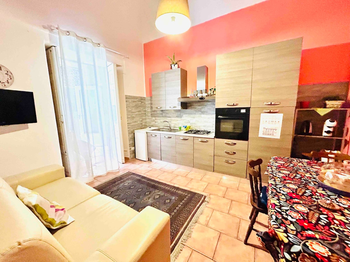 Apartment in a villa surrounded by greenery with sea view. Located 300 meters from the beach, easily accessible on foot. Just 5 minutes away from the center of Riposto, where you can bike or walk along the marina and promenade, where you'll find numerous pubs, restaurants, and pizzerias. A strategic point to reach the most famous destinations on the eastern coast of Sicily, such as Taormina, Catania, and Mount Etna, whose panorama is admirable from our garden.