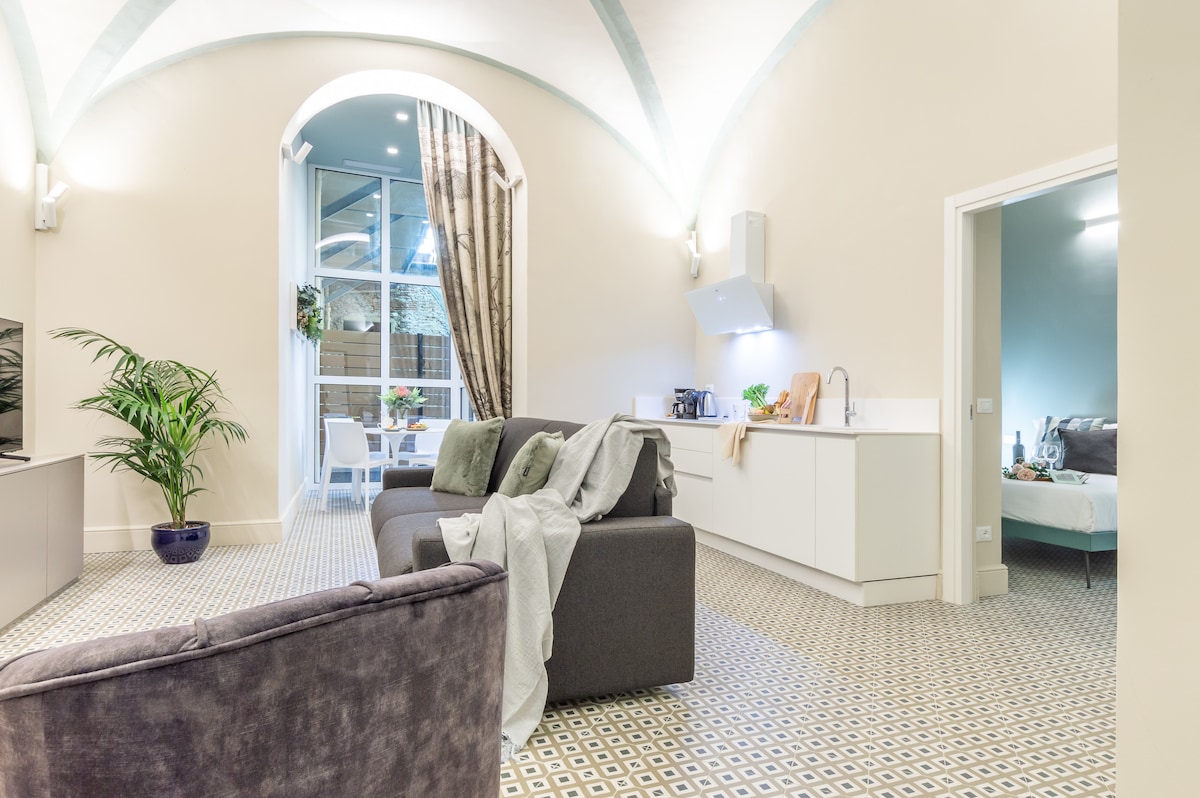 Soggiorna in uno stabile dove si dice che Cimabue abbia creato le sue opere. Gli alti soffitti dell'appartamento evidenziano il passato, ma la disposizione degli spazi e l'arredo celebrano il gusto moderno per la linearità e il comfort.