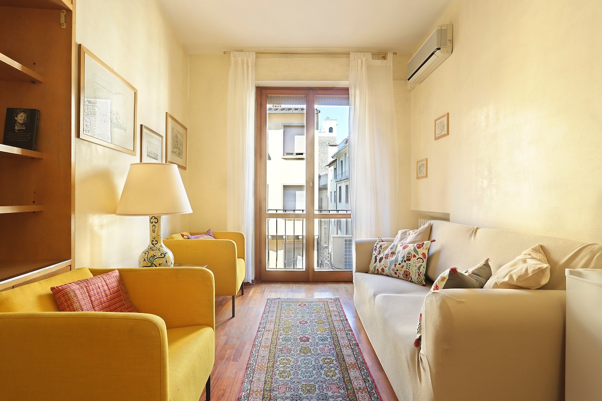 Beautifully renovated 17th-century apartment with AC in every room, blending modern comfort and antique charm. Original terracotta floors and stone stairs preserved. From the windows, enjoy a stunning view of the Synagogue’s dome, an unforgettable sight. Nestled in the authentic and vibrant Sant’Ambrogio neighborhood, close to markets and restaurants, it features a full kitchen, washing machine, super-fast Wi-Fi, Netflix. We also have another beautiful listing with similar features!
