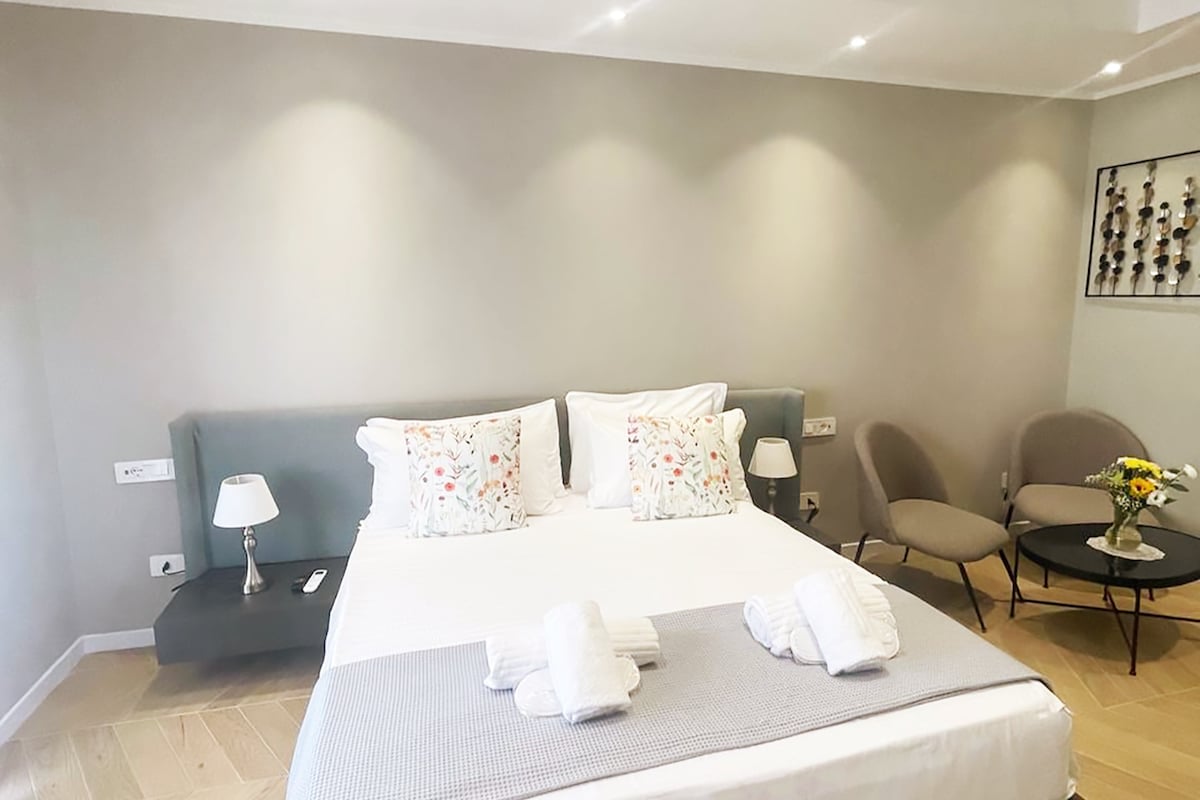 This bright and elegant Vintage Suite by Esquiline Suites has a super-chic designer Private Ensuite Bathroom and a top-notch Simmons Beautyrest Queensize bed. It also has a Private Balcony and seating area, and comes with TV, Mini-Fridge, AC/Heat, and free 24/7 Wi-Fi. Follow us at #EsquilineSuites by Frank & Soledad